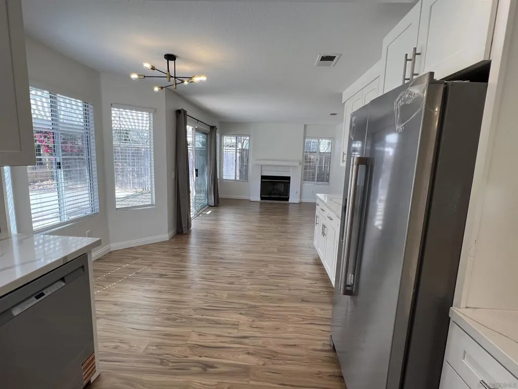 Beautifully updated home located in the highly desirable Santa Fe Hills community. This light-filled residence features a dramatic open floor plan with soaring vaulted ceilings and a convenient downstairs bedroom with full bath—ideal for guests or multi-generational living. Extensive recent upgrades include brand new flooring throughout the entire home with Mohawk laminate waterproof wood flooring downstairs and berber type carpeting upstairs. The interior has been freshly painted in Sherwin Williams timeless Alabaster White, creating a bright, modern feel throughout. The exterior has also been newly repainted, enhancing the home’s curb appeal. The kitchen is equipped with brand new stainless steel appliances and complemented by updated lighting fixtures throughout the home. Enjoy indoor-outdoor living in the private backyard featuring a covered patio—perfect for relaxing or entertaining. Central air-conditioning adds year-round comfort to this move-in ready property. Ideally located within walking distance to award-winning schools and Los Posas Community Park offering a community pool, lighted tennis courts, ball fields, and scenic hiking and jogging trails. A wonderful opportunity to own a beautifully refreshed home in one of the area’s most sought-after neighborhoods.