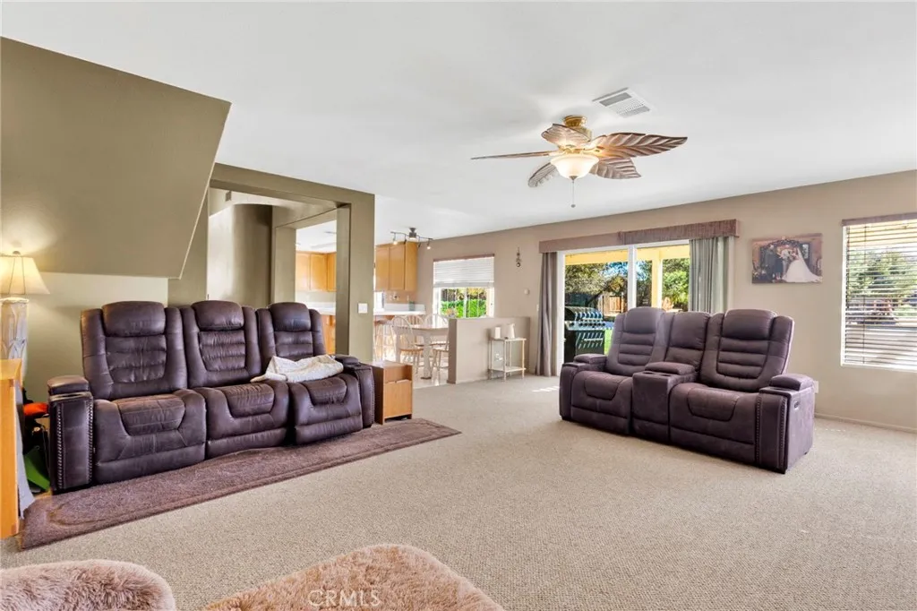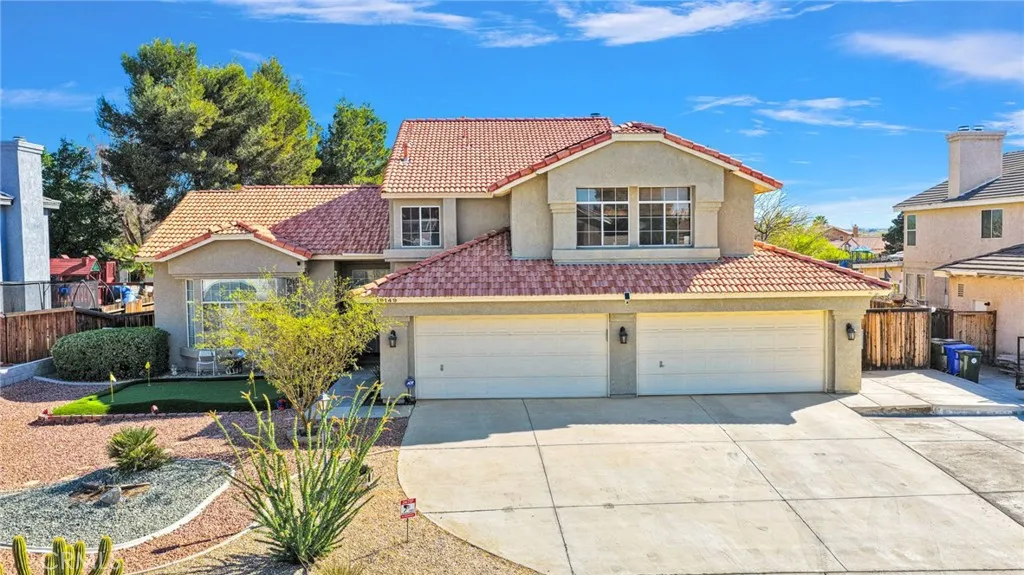 Welcome to this spacious 5-bedroom, 3-bathroom home located in the desirable Sterling Valley Ranch community of Apple Valley. Offering a perfect blend of comfort, functionality, and outdoor enjoyment, this property is designed for both everyday living and entertaining. Step inside to a thoughtfully designed layout with generous living spaces, abundant natural light, and a seamless flow throughout. The well-appointed kitchen provides ample cabinetry and workspace, perfect for gatherings and daily living. This home features five spacious bedrooms, offering flexibility for a growing household, guests, or a home office. The primary suite serves as a relaxing retreat with an en-suite bathroom and plenty of closet space. Energy efficiency is a standout with two solar systems, including one newer system that is fully paid off, along with a new solar battery (paid in full) for added savings and reliability. An additional existing solar system is currently on a lease. Step outside to your own private backyard retreat—lush, green, and filled with mature trees. Enjoy a variety of outdoor amenities including a greenhouse, fire pit, horseshoe pit, pitching mound, and putting green, creating the perfect space for relaxation and recreation. The property is also ideal for pet lovers, featuring dog doors and a dedicated dog run. Security and convenience are thoughtfully included with a Ring doorbell and two cameras, motion lighting in the side yard, security sensor lights, and a security screen front door.