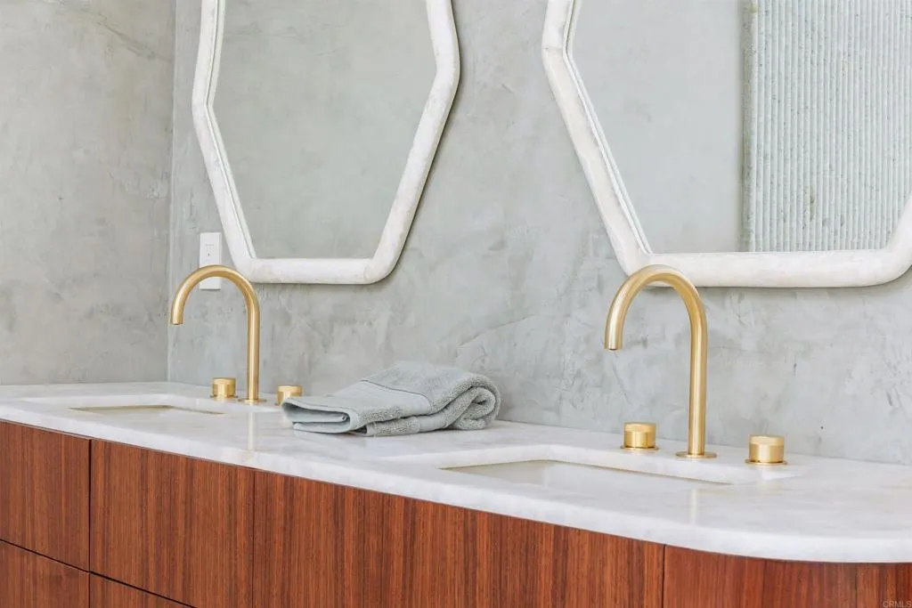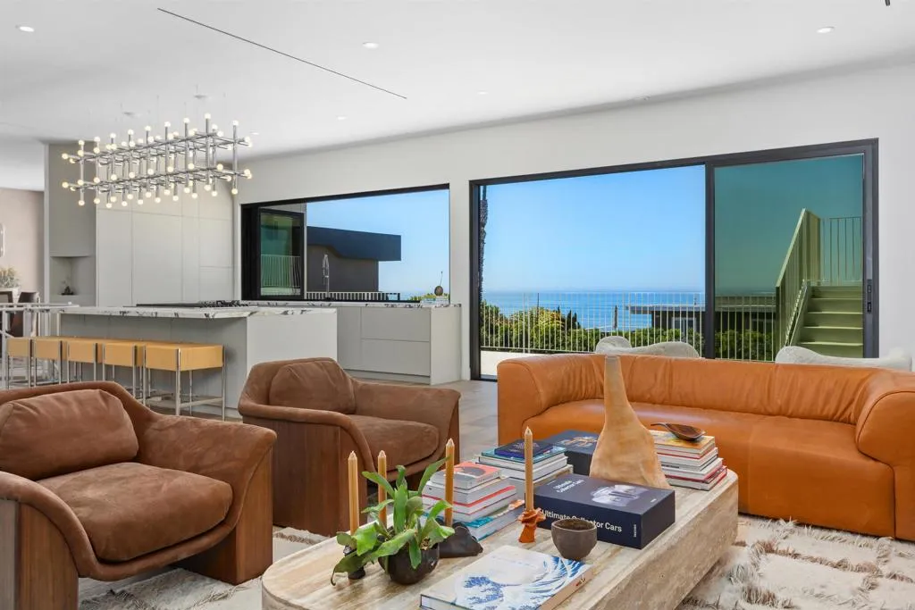 Step into a coastal masterpiece offering over 4,000 sq ft of refined living space, where every room is framed by sweeping, unobstructed ocean views. This exceptional home blends luxurious upscale design and wellness with features including: Five expansive ocean-view decks, over 1,800 sq ft, with vistas stretching to La Jolla and iconic surf breaks. Private outdoor retreat with a large grassy yard, stunning european style grass-edge pool, and oversized hot tub. Designer finishes throughout featuring Forms & Surfaces "Sunburst" entry doors, custom cabinetry and hardware, lighting by Serge Mouille, Isamu Noguchi, and Lightolier Temperature-controlled wine room for the discerning collector - Luxury wellness amenities including an infrared sauna, steam room, and cold plunge. Dual laundry for ultimate convenience. A show-stopping primary suite with a Hollywood-inspired open shower and freestanding soaking tub, all overlooking the Pacific. Dramatic cascading waterwall feature from a custom copper roof. Every detail has been thoughtfully curated to create a seamless indoor-outdoor coastal lifestyle unlike any other.