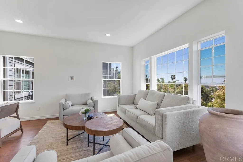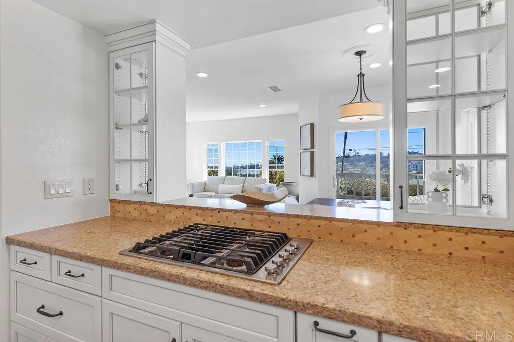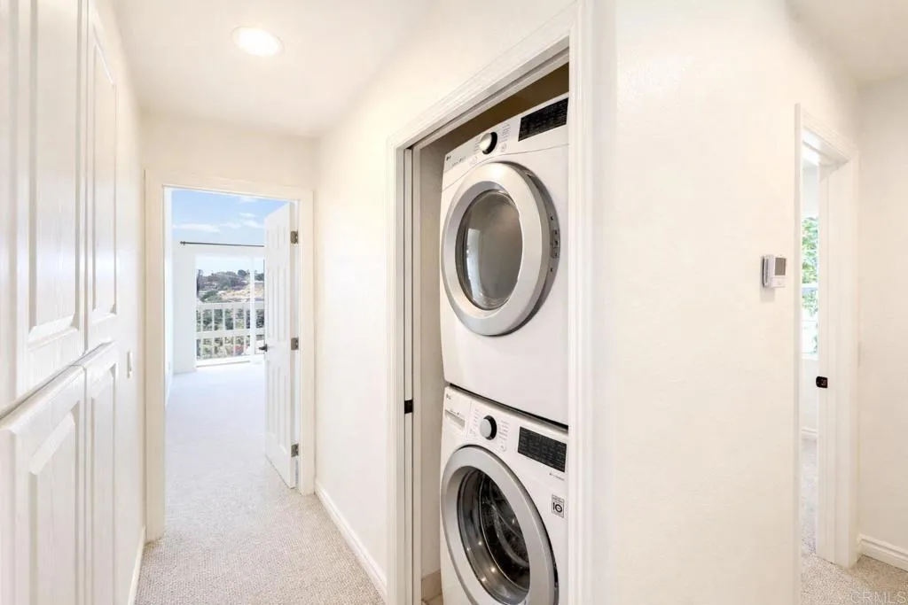 Remodeled beach townhome located west of I-5 in Solana Beach. This spacious, bright, and functional 3-story end-unit is tucked into the corner of a charming 12-unit gated community, offering exceptional privacy, beautiful west-facing windows, and ocean views from multiple areas of the home. The kitchen features white wood cabinetry, quartz countertops, and matching JennAir appliances, including a built-in refrigerator. It opens seamlessly to a nicely sized dining area and a large living room, creating an ideal layout for both everyday living and entertaining. Engineered wood flooring runs throughout the main level, while abundant windows fill the home with natural light. The interior has been freshly painted throughout, and custom window treatments are currently being installed. A convenient powder room is also located on the main floor for guests. Upstairs, you’ll find both bedrooms, a convenient office nook with a gorgeous coastal view, and a full-size washer and dryer. Both upstairs bathrooms have been beautifully remodeled, and the primary bedroom balcony offers the perfect place to relax and unwind. Additional highlights include brand new central air conditioning, plentiful storage, an oversized 2-car garage, and an additional storage room. Located in the gated community of Del Mar Downs, this unique townhome is ideally situated near some of the area’s best beaches, excellent schools, and top-rated restaurants. The Del Mar Racetrack, Cedros Design District, and the Village of Del Mar are all just down the street, giving you the best of both Solana Beach and Del Mar right at your fingertips.