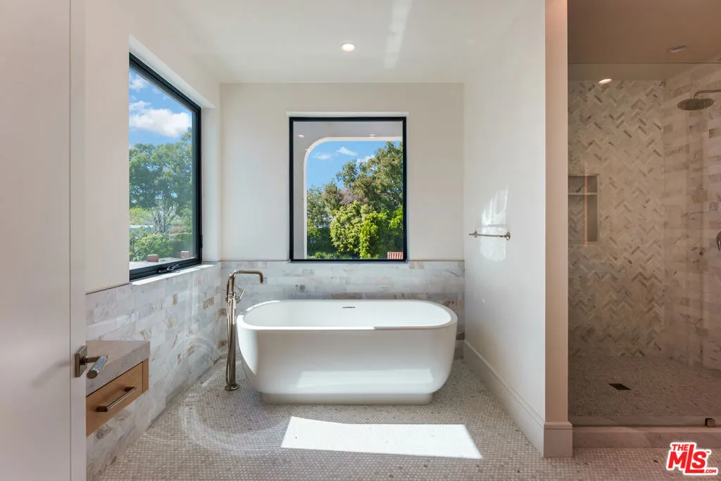 The Ultimate Palisades Retreat: New Luxury Estate Compound for Lease! Experience the pinnacle of Pacific Palisades living in this newly completed, beautiful 8-bedroom, 9-bathroom contemporary estate. Ideally situated in a highly coveted coastal enclave above the Bel-Air Bay Club, this thoughtfully designed sanctuary is a masterclass in modern luxury. This rare compound offers two distinct residences: a spacious, light-filled 5-bedroom main home and a premier, detached 3-bedroom guest house, providing unparalleled versatility for modern living. The spacious main residence is a showcase of designer details, featuring wide-plank hardwood floors throughout and anchored by a dramatic multi-story staircase with a stunning rose quartz crystal chandelier. The culinary-grade chef's kitchen features a massive stone island and top-of-the-line Wolf and Miele appliances. Designed for effortless California casual living and modern entertaining, floor-to-ceiling Fleetwood doors disappear to reveal a beautiful, flat, and ultra-private backyard sanctuary. This outdoor oasis features a sparkling pool and spa, fire pit, and professional DCS BBQ kitchen, all complemented by an outdoor shower and pool bath.Offering immense flexibility, the detached two-story, 3-bedroom guest house functions as a full-scale second residence (ADU), complete with its own designer kitchen, laundry, gated parking, and a private rooftop deck. Both homes are seamlessly integrated with a Sonos sound system extending across the grounds and rooftop decks; while professional-grade security, automated gates, Tesla Powerwall with solar, and EV charging ensure a secure, self-sufficient lifestyle. The estate is crowned by the main home's expansive rooftop deck, offering incredible panoramic views - including the Pacific Ocean and Santa Monica Mountains. Mere moments to the beach, the newly re-opened Palisades High School, and the soon-to-reopen Palisades Village, residents enjoy effortless access to world-class hiking, dining, and local essentials like the Vons on Sunset. This is a rare opportunity to lease a brand-new, beautifully curated compound for a minimum 13-month term in one of Los Angeles' most prestigious coastal pockets.