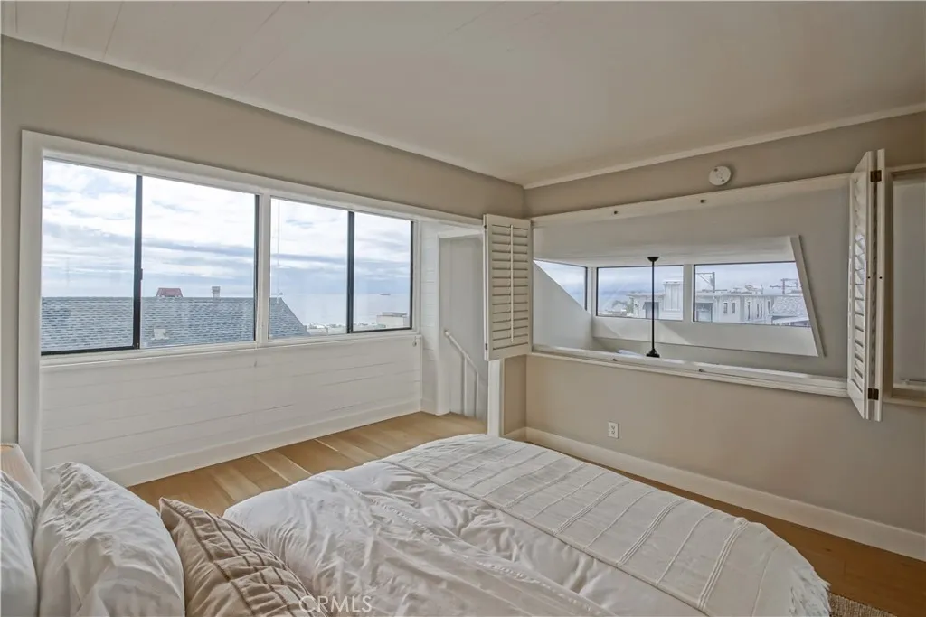 Welcome to the definition of California cool—320 Marine Ave is where contemporary luxury meets effortless beachside living. Fully renovated and fully furnished (yes, down to the linens and flatware), this two-story detached townhome is a polished gem, sitting just one block from the sand. Behind its crisp, white exterior—a nod to classic beach chic—you’ll step into a bright, airy great room featuring soaring two-story ceilings, showstopping windows, and sweeping ocean views that practically beg you to kick back and stay awhile. The seamless open floor plan connects a cozy living room (beautiful gas fireplace included), dining area, and a chef-worthy kitchen outfitted with top-tier Thermador stainless steel appliances, Quartz counters, bar seating, and sleek cabinetry. It’s a layout built for both laid-back mornings and lively evening gatherings. Down the hallway, you’ll find a spacious additional bedroom perfect for guests or a home office, a stylish bathroom with a glass walk-in shower, and the first Primary Suite that offers something truly special: privacy at the end of the hall, its own separate outdoor entrance, a kitchenette, and a private balcony with peek-a-boo ocean views. The ensuite bath feels more like a personal spa—dual sinks, storage galore, and a stunning rainfall dual shower framed by herringbone tile. Take the enticing spiral staircase upstairs to a second Primary Suite that doubles down on wow-factor: open shutters overlooking the great room below, ocean views at nearly every angle, and another luxe ensuite bath with its own large glass rainfall dual shower. Throughout, you’ll find refined finishes at every turn—White Oak engineered hardwoods, designer light fixtures, plantation shutters, recessed lighting, and of course, those iconic Manhattan Beach views. The oversized garage fits two cars plus storage, and even boasts a full bathroom with a tub/shower combo (surfboards welcome). Tucked in a prime location, you’re just a breezy stroll to the beach, downtown, Live Oak Park, top-tier restaurants, boutique shops, and award-winning schools. The ultimate California beach lifestyle? You’re looking at it. Ready to make waves at 320 Marine? Let’s get you in before this coastal beauty is gone.