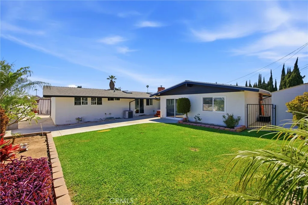Welcome to this impeccable 4-bedroom, 3-bathroom home + office, offering 2,077 sq ft of living space on a desirable corner lot in a prime Garden Grove location. This energy-efficient home features 39 fully paid-off solar panels, helping keep utility costs low while providing modern, sustainable living. Inside, the home offers an inviting layout with vaulted ceilings, skylights, and sliding glass doors that fill the home with natural light. The living area features a cozy fireplace, creating a comfortable space for relaxing or entertaining. The kitchen is equipped with granite countertops, stainless steel appliances, and soft closing cabinets making it both functional and stylish. The large primary suite is a true retreat, featuring beautiful porcelain tile, accent walls, a large walk-in closet, double-sink vanity, and an oversized walk-in shower. The suite also includes its own separate AC system and private layout, offering excellent flexibility and potential ADU-style living for extended family or guests. Step outside to enjoy multiple outdoor spaces including a private courtyard, spa, and an open grassy yard perfect for relaxing or entertaining. This versatile property features two driveways, RV parking space, and a 2-car garage, providing plenty of parking and storage options. The property also features white vinyl fencing for added privacy and two storage sheds in the backyard. Additional highlights include: NO HOA, Low tax rate and Conveniently located near schools. The home is also close to shopping, dining, and parks, making everyday conveniences easy.