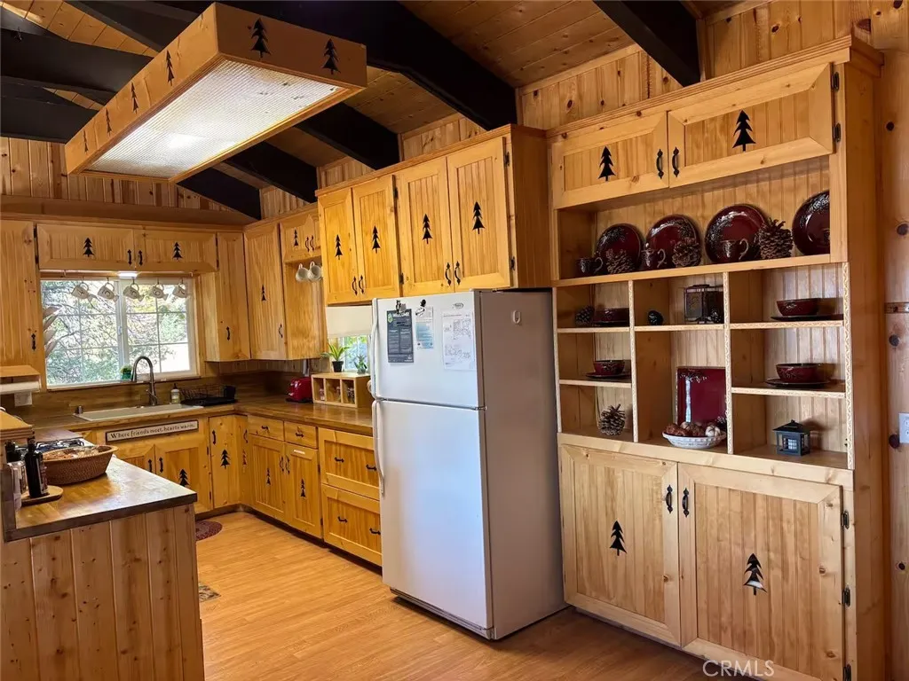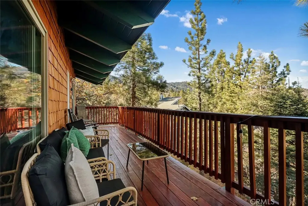 Welcome to this charming mountain retreat located in the desirable Upper Moonridge area of Big Bear Lake. This spacious cabin offers 4 bedrooms, 2 bathrooms, and approximately 1,824 sq ft of living space on a generous 9,856 sq ft lot. The open-concept living area features vaulted wood-beamed ceilings, abundant natural light, and a cozy fireplace, creating the perfect mountain lodge atmosphere. Enjoy breathtaking views of the lake, mountains, and ski slopes from the large wraparound deck—ideal for relaxing or entertaining while taking in Big Bear’s beautiful sunsets. The home also features two kitchens and a versatile lower level with its own living space, offering excellent flexibility for guests, extended family, or potential rental opportunities. Conveniently located just minutes from Bear Mountain Ski Resort, Big Bear Lake, the National Forest, and the Moonridge Corridor’s shops and restaurants, this property is perfect as a primary residence, vacation getaway, or investment opportunity.