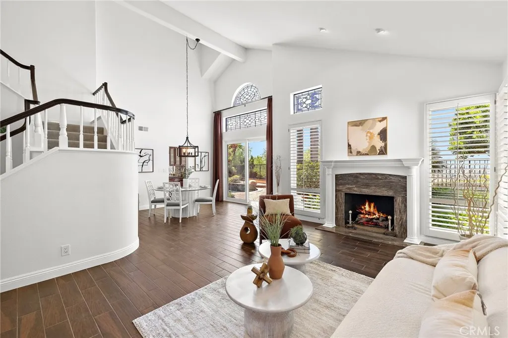 Nestled within the prestigious gated community of Canyon Crest Estates, this beautifully maintained residence offers a seamless blend of comfort, elegance, and everyday livability. Thoughtfully designed with both function and flow in mind, the home features 4 spacious bedrooms—including a highly desirable main-floor bedroom—and 3 well-appointed bathrooms. Step inside to an inviting, light-filled layout where living spaces unfold effortlessly from one room to the next. Fireplaces in both the living room and family room create warm, intimate gathering spaces—perfect for quiet evenings or hosting with ease. The heart of the home extends outdoors to a private backyard retreat, complete with a sparkling pool, soothing spa, and breathtaking views—an ideal backdrop for entertaining or simply unwinding at the end of the day. Upstairs, the reimagined primary suite offers a true sense of escape, highlighted by a spa-inspired bath featuring luxurious heated floors, adding a layer of comfort and refinement to your daily routine.Set within a secure, amenity-rich community and conveniently located near top-rated schools, shopping, dining, and recreation, this home embodies the best of Mission Viejo. Live the good life in Mission Viejo!