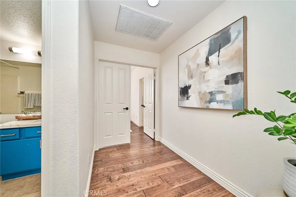Bright & Charming 4-Bedroom Home in Prime Stevenson Ranch! This beautifully maintained 4-bedroom, 3-bathroom home features a highly desirable layout with one bedroom and a full bath conveniently located downstairs. The high-ceiling entry enhances the open and airy feel of the home. The spacious open family room includes a cozy fireplace, perfect for relaxation. In 2022, NEW INTERIOR & EXTERIOR PAINT, NEW AIR CON and NEW KITCHEN upgrade done. Enjoy the elegance of high-quality wood flooring throughout, along with a brand-new kitchen counter top and cabinets. The laundry room is conveniently located near the garage entrance through the kitchen. The backyard is designed for both ease of maintenance and enjoyment, featuring an EXTENDED CONCRETE PATIO for a clean and modern look, while a well-sized lawn provides space for gardening. Additionally, the home comes with a PAID-OFF SOLAR SYSTEM, offering energy efficiency and savings on electricity bills. Located within walking distance to an elementary school and close to shopping centers and freeway access, this home offers an unbeatable location. Very well maintained and move-in ready!