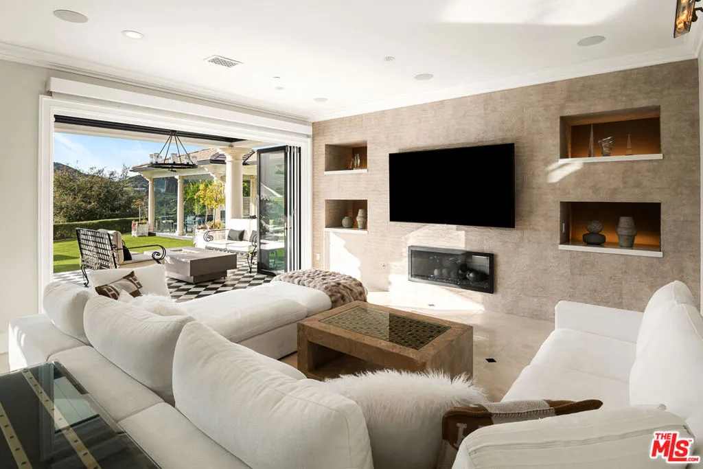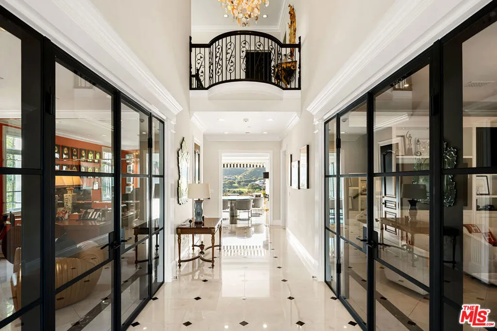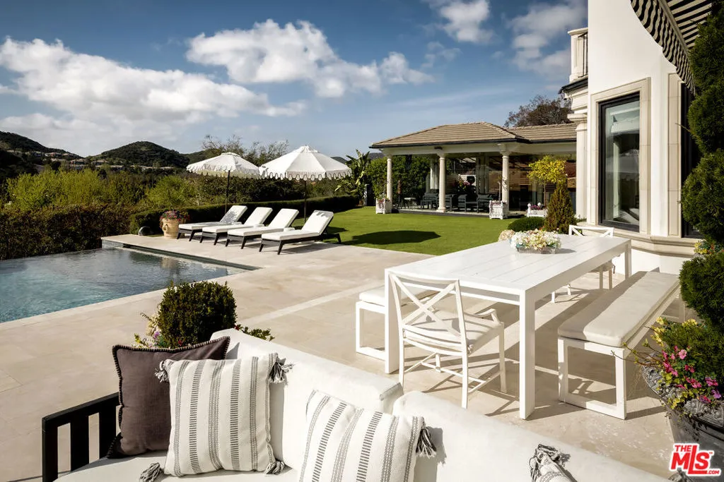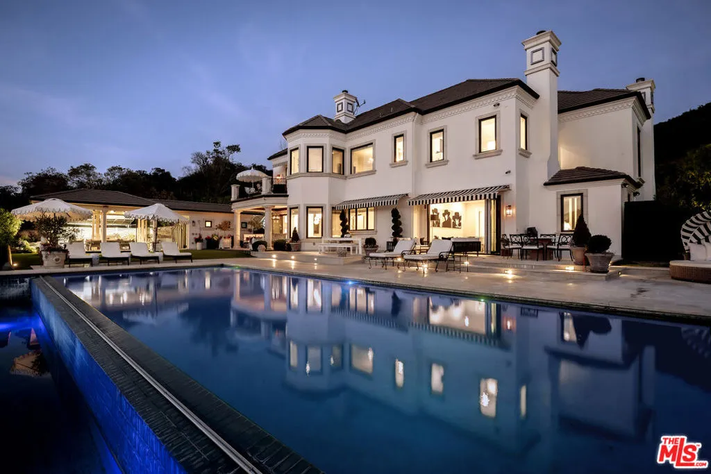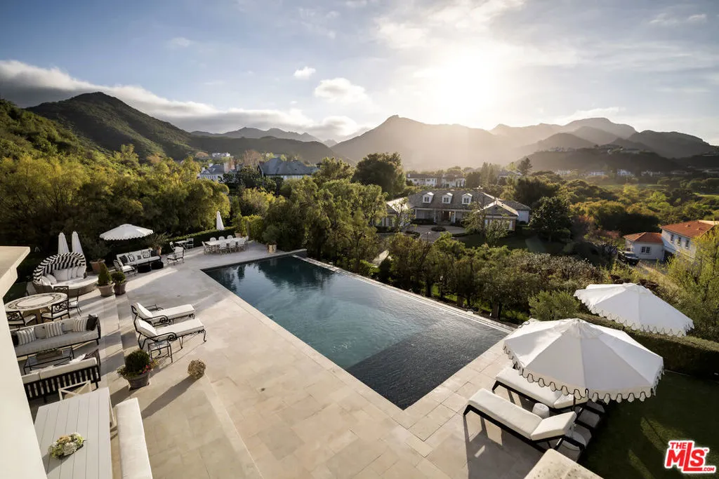 Perched along coveted Stafford Road within the gates of Sherwood Country Club, this modern French villa sits on one of the community's rarest offerings more than six private acres overlooking the iconic clubhouse, rolling greens, and surrounding mountains. Designed and built for its owner to live, entertain, and create in total privacy, the estate captures panoramic golf course and mountain views from nearly every room. A long gated driveway leads to a grand motor court for six or more vehicles and a dramatic two-story entry filled with natural light. Recently updated with exceptional finishes, the residence features a reimagined chef's kitchen with dream pantry, hidden office, billiard room, and professional recording studio. Stone floors, soaring ceilings, and designer lighting add warmth and sophistication throughout. Living and dining spaces open seamlessly to resort-style grounds featuring an infinity-edge pool, fire pit lounge, outdoor dining and BBQ area, gardens, and a freestanding glass-walled gym with A/C, full bath, and outdoor shower. The thoughtful layout includes four en-suite bedrooms and six baths, highlighted by a stunning primary suite with fireplace, dual baths, dual closets, and a private balcony overlooking the estate. A rare offering combining scale, privacy, and front-row views within one of Southern California's most prestigious gated communities. Only 20 minutes to Camarillo Private Airport.