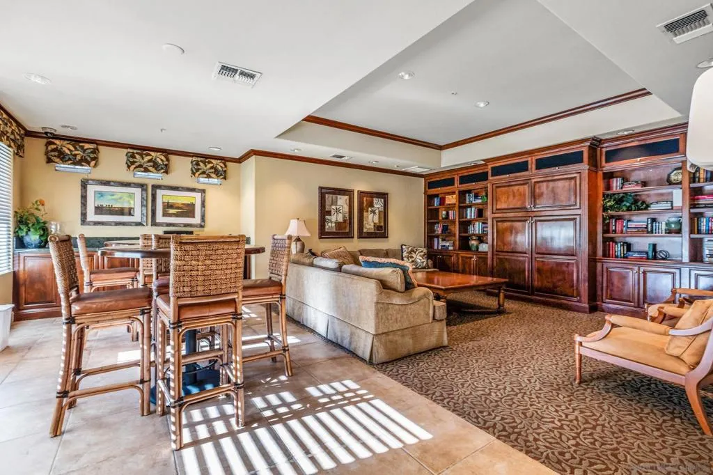 Highly updated Savannah Terrace condo in desirable Sabre Springs with stylish upgrades throughout. Features include wood flooring, stainless steel appliances, gas range, an electric fireplace, recessed lighting, new carpet in the bedrooms, and ceiling fans for added comfort. This HOA is VA approved! The spacious primary suite offers a relaxing retreat, while central A/C and full-size in-unit laundry (w/gas dryer) add everyday convenience. Enjoy the private, spacious balcony - perfect for morning coffee or unwinding at the end of the day. A detached one-car garage with built-in storage is located directly below the unit, offering both privacy and convenience. Savannah Terrace features a spacious, beautifully maintained community setting with abundant greenery and mature foliage throughout. Resort-style amenities include a swimming pool, hot tub, tennis court, basketball half-court, racquetball court, social lounge, outdoor BBQ area, library, children's playroom, and convenient guest parking.