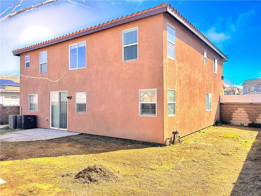 Step into this spacious and beautifully upgraded two-story home offering over 2,800 sq ft of comfortable living space, thoughtfully designed for both everyday living and entertaining. This impressive residence features 5 generously sized bedrooms and 2.5 bathrooms, enhanced with fresh interior paint that gives the home a clean, modern feel. The heart of the home is a well-designed U-shaped kitchen, complete with granite countertops and a full set of appliances including a refrigerator, gas range, dishwasher, washer, and dryer. A built-in water filtration system adds convenience and quality to your daily living. The open-concept layout seamlessly blends the living and dining areas, creating a bright and inviting atmosphere, while the family room is equipped with media connections—perfect for movie nights and gatherings. Upstairs, the spacious primary suite offers a relaxing retreat, featuring a large walk-in closet, dual sinks, a separate shower, and a soaking bathtub. Additional highlights include energy-efficient solar panels on a durable tile roof, dual air conditioning units with separate thermostat controls for optimal comfort, and a generously sized driveway. Step outside to a well-sized backyard ideal for family gatherings, outdoor dining, or simply enjoying time with loved ones. Located in a highly desirable neighborhood, this home is within walking distance to schools, churches, and everyday conveniences—making it a perfect blend of comfort, space, and location. Don’t miss the opportunity to make this exceptional home yours!
