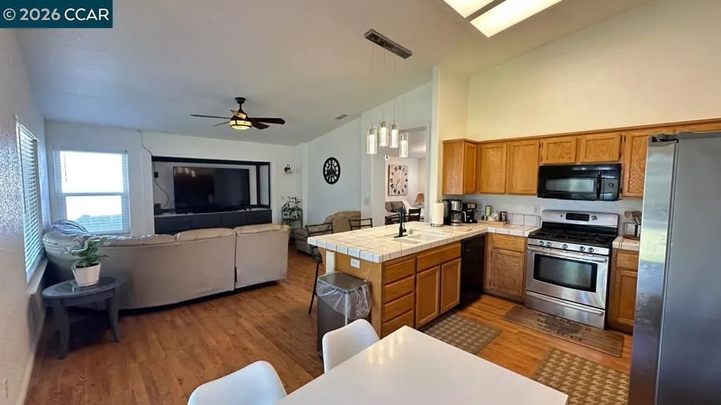 Welcome to this well-maintained single-story home located on a desirable corner lot in the heart of Williams. Offering 3 bedrooms, 2 bathrooms, and 1,463 square feet of comfortable living space, this property combines functionality with everyday convenience. Step inside to find a freshly painted interior complemented by durable laminate flooring throughout the main living areas. The kitchen features classic tile countertops, providing both style and practicality, while both bathrooms are also finished with tile surfaces for a cohesive look. The home sits on an expansive 8,712 square foot lot, offering a spacious backyard perfect for entertaining or relaxing. Enjoy outdoor living year-round under the long covered patio—ideal for gatherings, barbecues, or simply unwinding after a long day. Additional highlights include RV parking with a dedicated cover, ample storage space, and a large driveway that can comfortably accommodate up to three vehicles, in addition to the attached 2-car garage. The tile roof adds durability and long-term value to the home. This property offers a great blend of indoor comfort and outdoor versatility—perfect for homeowners looking for space, convenience, and functionality.