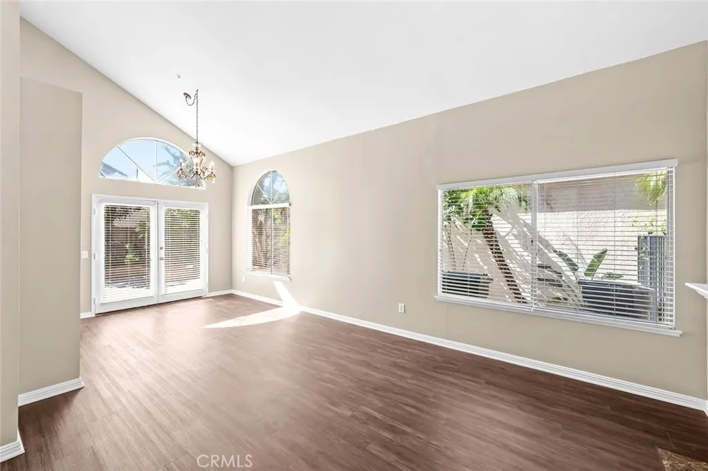 Located off the 91 Freeway, with NEW two toned interior paint, NEW quartz countertops and stainless steel sink in the kitchen, this two-story home welcomes you to a private entry courtyard/patio area. There are a total of 3 bedrooms and 2.5 baths, and the home features a formal double door entry to a step-down living/dining room combination with NEW luxury vinyl plank flooring and a cozy fireplace. The separate family room is open to the breakfast nook and kitchen with easy access to the rear yard. Downstairs is also a 1/2 bath and laundry area. Upstairs are two secondary bedrooms sharing a hall bath and the primary bedroom with ensuite bath with double sinks, separate walk-in shower & toilet and a walk-in closet. There is a combination of wood laminate, luxury vinyl plank and neutral tile flooring. The kitchen and baths were updated with beautiful travertine walls. Additional updates include crown moldings, upgraded baseboards. Low maintenance rear yard with fire pit and plenty of outdoor space for family gatherings and outdoor dining. Two car garage with built in cabinets. Located in Villa del Rio HOA with low monthly dues of $46paid quarterly. Located in the award-winning Bryant Ranch Elementary School, Travis Ranch Middle and Yorba Linda High School! Brush Canyon Park is walking distance with picnic tables, playing fields, tennis & pickle ball courts, and basketball courts. The Santa Ana River trail is great for walking, running, and cycling!