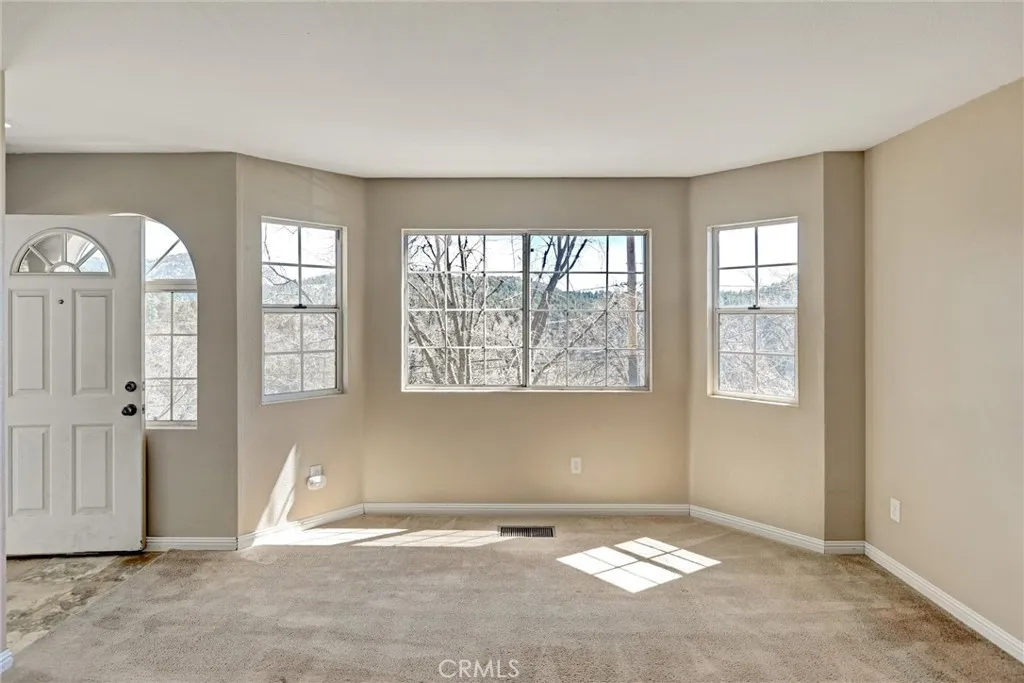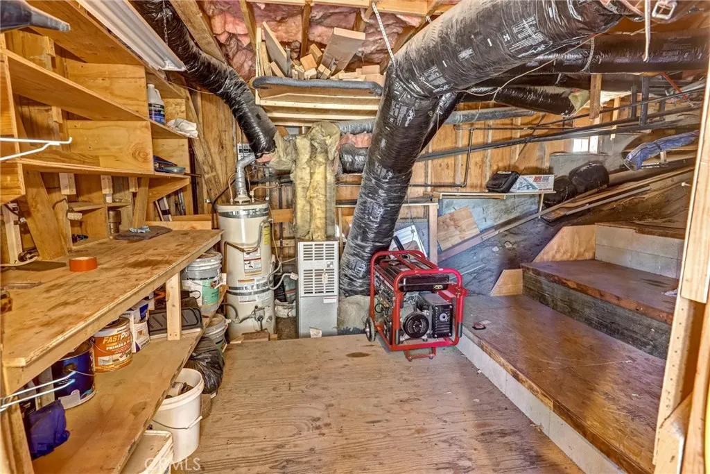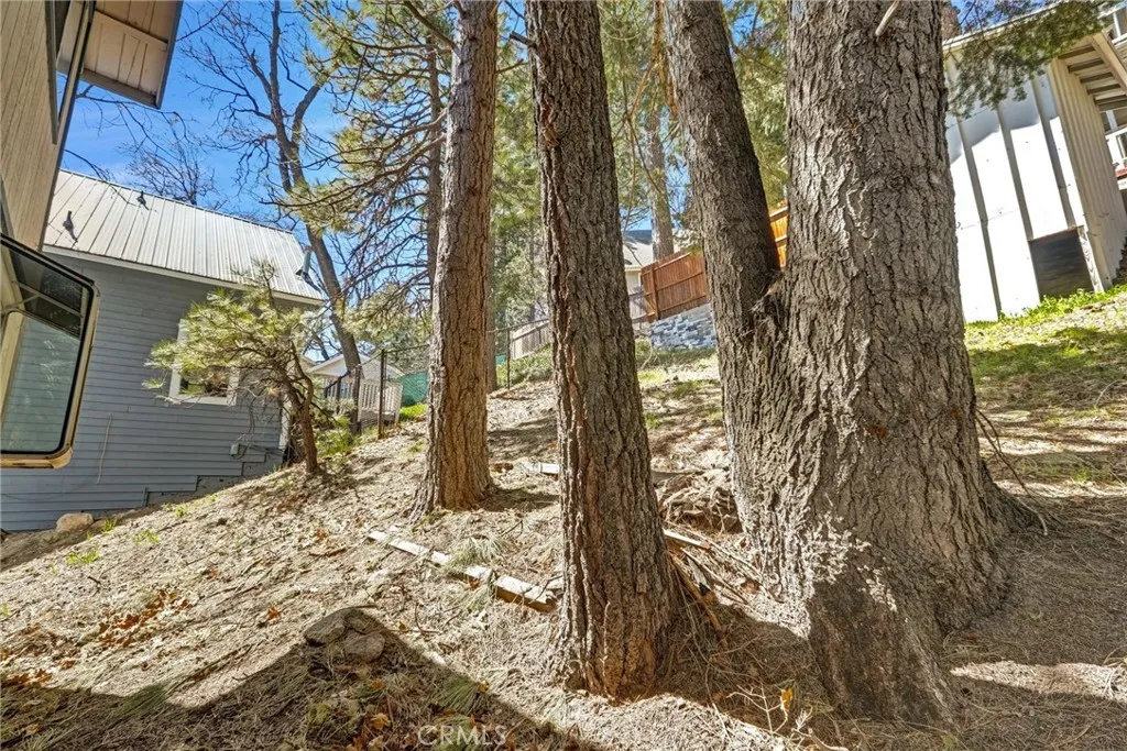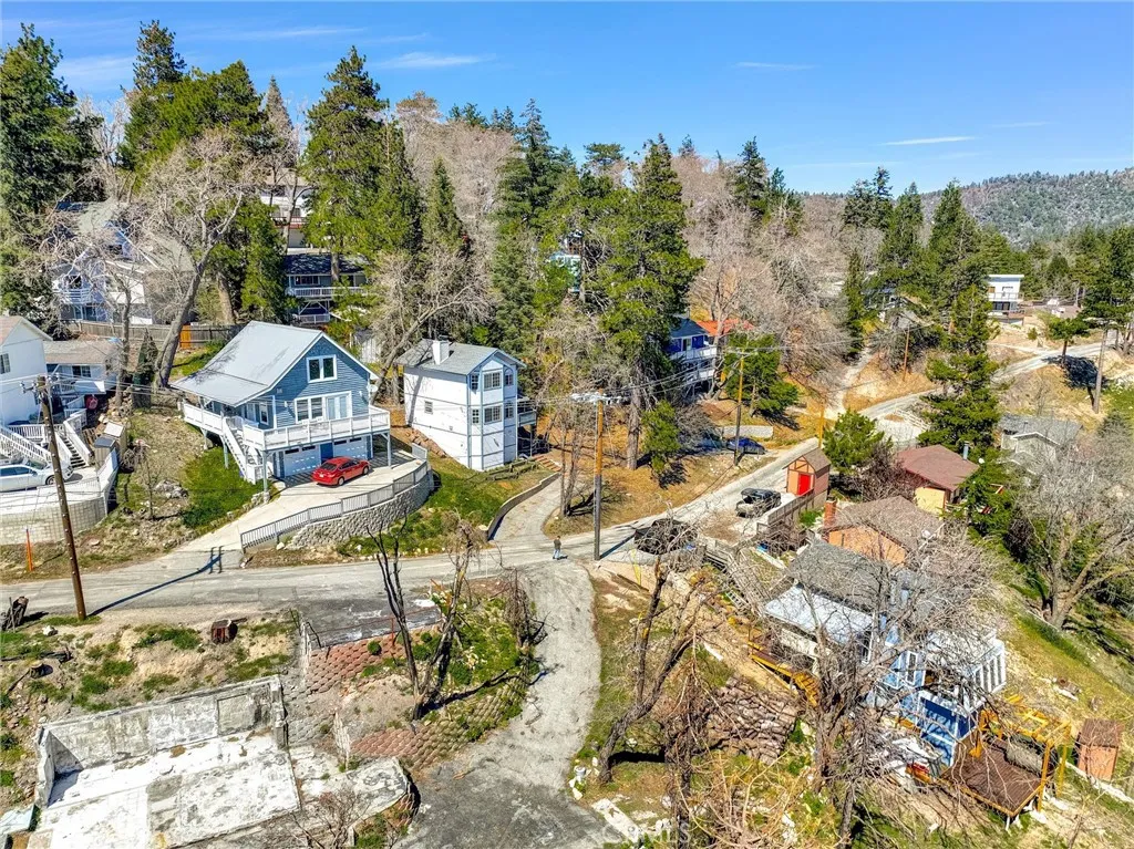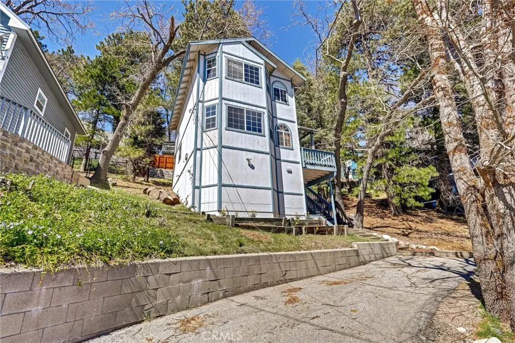 Charming and well-cared-for mountain retreat featuring a roof replaced in 2022 and a warm, inviting layout. Enter on the main level into the comfortable living room highlighted by a brick corner fireplace and an abundance of front windows that fill the space with natural light. The dining area offers built-in cabinetry, a ceiling fan, a storage/pantry closet, and sliding glass doors that lead directly to the deck, perfect for enjoying the peaceful mountain setting. This level also includes a convenient half bathroom combined with the laundry area. The galley-style kitchen is equipped with a double wall oven, a separate range, dishwasher, microwave, and a garden window overlooking the backyard. Upstairs you’ll find two bedrooms with vaulted ceilings that create an open, airy feel. The larger primary bedroom faces the front of the home and features multiple windows with a beautiful view, a ceiling fan, mirrored closet doors, and a built-in office nook. The second bedroom is situated toward the rear and also includes high ceilings, a ceiling fan, and mirrored closet doors. A full bathroom with tub/shower combo and a linen closet complete the upper level. Outside, a storage shed sits at the end of the deck, ideal for firewood or outdoor gear. The buildup area offers additional storage space, a utility sink, and a whole-house generator with transfer switch for added peace of mind. The property also includes private off-street parking for at least two vehicles. Conveniently located just off Highway 18 (Rim of the World Hwy) and within walking distance to local shops and services. Easy access to Highway 330, less than 6 miles to Snow Valley, approximately 13 miles to Lake Arrowhead, and about 15 miles to Big Bear Lake — making this a great home base for year-round mountain living and recreation.