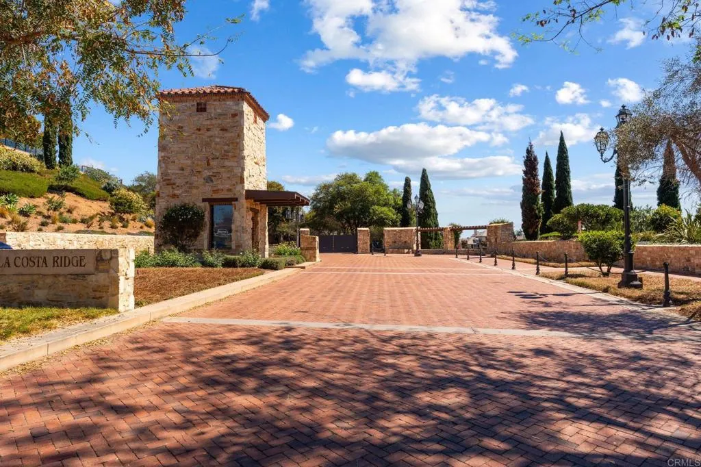 Sitting high within the gated community of La Costa Ridge, this stunning single story home, built in 2007, is the epitome of Carlsbad living! The indoor/outdoor flow of this home is amazing with two inviting courtyards in addition to the awesome back yard area. Enjoy panoramic views from the snow-capped mountains in the east to the blue Pacific Ocean and Batiguitos Lagoon in the west. The impressive kitchen features granite countertops, stainless steel appliances (including double ovens, a warming drawer, and wine refrigerator) and a large walk-in pantry and a separate wine storage area. Improve your golf game on your own putting green, relax at day's end on the raised seating area above the waterfall & pond with ocean views in the distance, and entertain with ease on the huge tumbled stone patio. The primary suite features amazing views, a cozy fireplace and an impressive bathroom with soaking tub and separate shower, as well as a huge walk-in closet. Each of the three bedrooms has ensuite baths, and one opens to the private front courtyard. The kitchen area also has a built-in home office cubby...perfect for today's digital work needs. The two care garage is oversized with plenty of storage. Solar is paid for in full.