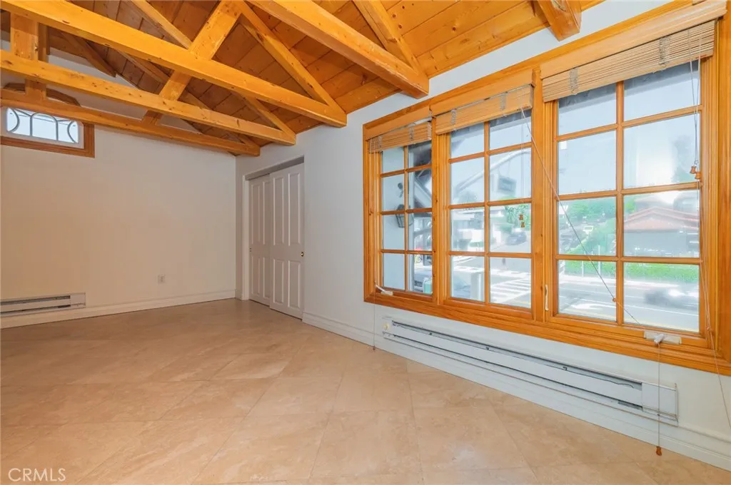 Charming ocean-view end unit located in the heart of Laguna Beach. Filled with natural light, this residence features an open floor plan, soaring ceilings with exposed wood beams, and a warm coastal ambiance. The upgraded kitchen offers granite countertops, generous cabinetry, and flows effortlessly into the living and dining areas, with windows that showcase ocean views. A private deck extends the living space outdoors, ideal for enjoying ocean breezes and relaxed coastal living. The property also includes a detached enclosed garage. Ideally situated just moments from the beach and within easy reach of local dining, shopping, and entertainment.