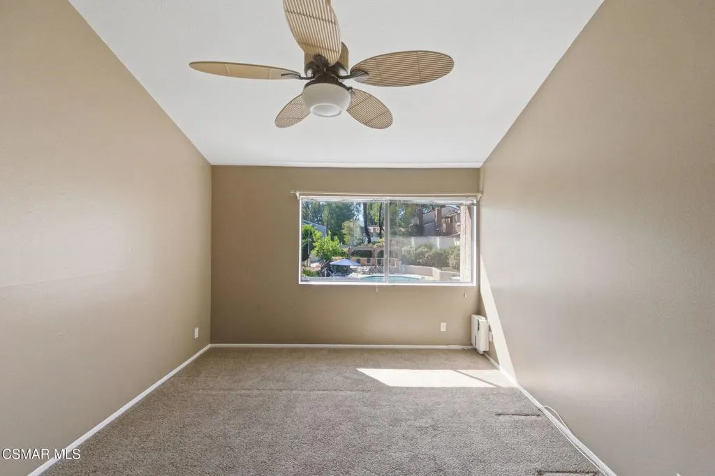 This lovely condo is in the highly desirable Amberwood community, across from Amgen. The open floor plan with high ceilings and large balcony overlooks the pool and spa, which offers privacy with no units directly looking in. Primary bedroom has 2 closets, living room has a nice, cozy fireplace. Newer air conditioner plus ceiling fans in every room. There is a shared one car garage with room for storage. Location is great for those who work at Amgen! Close to shops, restaurants and easy access to the freeway.
