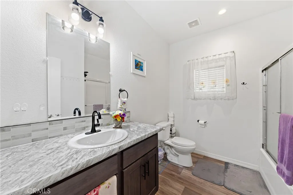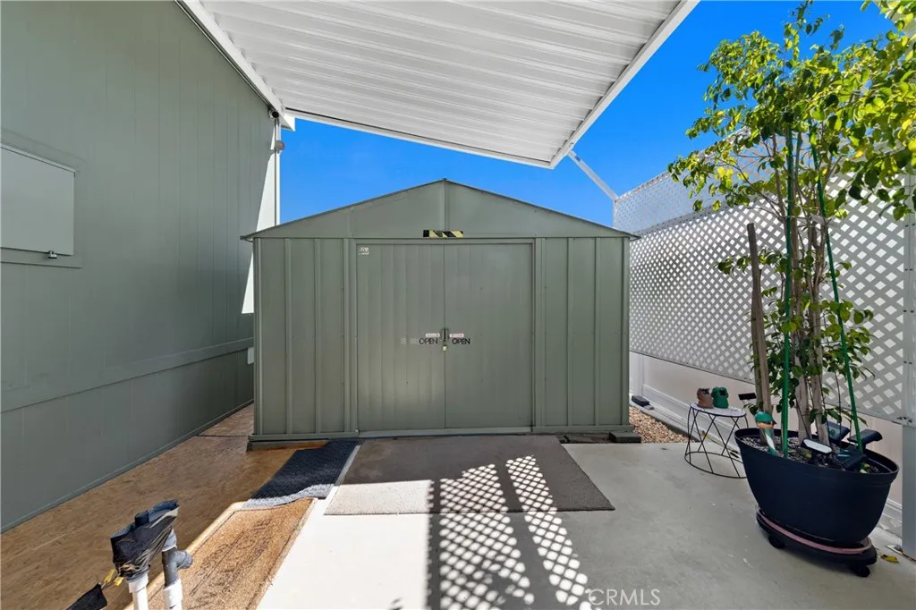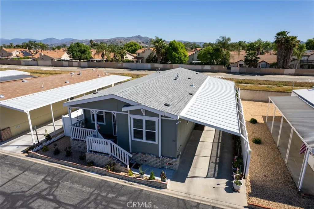 Like new 3 bedroom 2 bath manufactured home with mountain view from the brick-accented front porch, located in ALL-AGE Villa Del Sol Mobile Home Estates within close proximity to restaurants and shopping. Open great room style living area with high ceilings, vinyl plank flooring, and ceiling fan. Spacious kitchen has island breakfast bar, standing pantry, farmhouse-style sink with decorative glass/tile backsplash, and stainless steal appliances including 5-burner gas stove, dishwasher, and refrigerator. Master bedroom boasts a walk-in closet and ceiling fan, and en suite bathroom with accessible shower and dual-sink vanity. All bedrooms have convenient center-ceiling light fixtures. Full guest bath has ample counter space and built-in medicine cabinet. Inside laundry includes washer/dryer. Extra tall carport to accommodate over-size vehicle with lattice privacy screening and vinyl fencing. Easy care rockscape landscaping and large shed. Security front and side screen doors and home automated HVAC and security system. Gated family park. Amenities include: Swimming pool (heated during summer), spa, Club house with banquet facilities, billiard room with ice hockey and ping pong tables, Community Laundry Facilities, Boat/RV Storage ($35/mo), kids’ playground and picnic area.