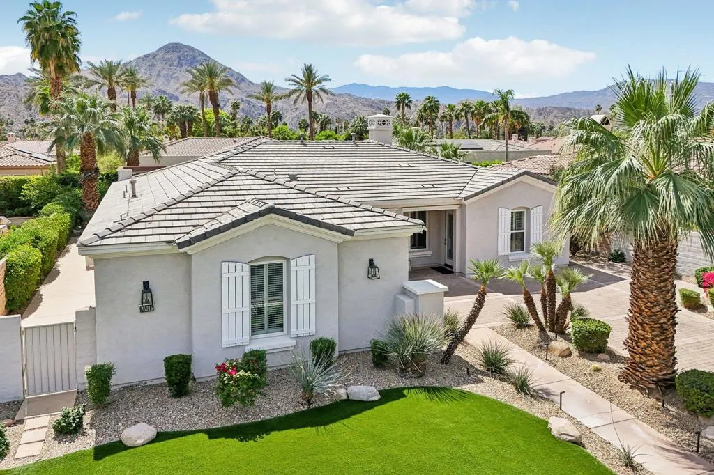 This stunning turnkey resort style home at 76215 Via Fiore has been completely updated since ownership, showcasing modern elegance and thoughtful upgrades throughout. The home features new flooring finished with imported Italian tile, new cabinetry, and a beautifully redesigned fireplace with floor to ceiling Italian tile, creating a cohesive, high end finish throughout the living space. Enhanced lighting brightens every room, while all bathrooms have been fully remodeled including a reimagined primary bathroom with a sleek, contemporary aesthetic.After you enter the gated community you will see a north facing front door welcomes you into an inviting open concept layout that feels private and set apart from the surrounding homes in Indian Wells. Both AC units were replaced in 2021, leased solar, and the water system was upgraded in 2022, giving the next owner peace of mind with major systems already updated.To top it off, this community offers exceptional value with a low HOA of just $260 per month, granting residents exclusive access to the Miramonte Resort amenities as well as the Hyatt. Golf is also deeply discounted for residents at only $35 per round, compared to the standard $300 nonresident rate, making this one of the most desirable lifestyle opportunities in Indian Wells.
