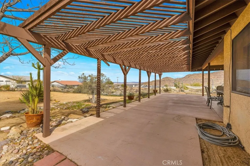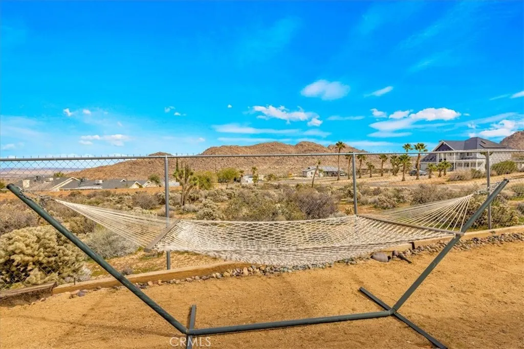 Beautiful home with 1500 square feet of well-planned space, granite countertops in kitchen and baths, and expansive territorial views. The open layout flows easily into the dining and living areas, where large windows frame the surrounding landscape and bring in natural light. Two bedrooms, 2 baths, with overhead fans in both bedrooms and above the dining area add comfort, along with central AC and heating, an up-duct evaporative cooler, and a newer heat pump. Dual pane windows provide energy efficiency throughout. Newer stove and dishwasher in kitchen. The primary suite includes natural wood closet doors and a remodeled bathroom with granite counters and a glass-enclosed shower. The guest bath has also been updated with granite countertops, continuing the cohesive finishes throughout the home. Outside, mature desert landscaping, established trees, and fencing create a private setting. The covered patio offers space to relax, entertain, or simply take in the expansive sky and distant views. A storage shed adds functionality, and the property is serviced by propane. Located just minutes from Joshua Tree National Park, the Joshua Tree Lake Campground, local hiking trails, and the vibrant art and music scene of downtown Joshua Tree, this home offers the opportunity to enjoy both quiet desert living and easy access to the area’s outdoor recreation and community events. Almost half acre lot in quiet neighborhood. A well-maintained view home in one of Joshua Tree’s sought-after neighborhoods.