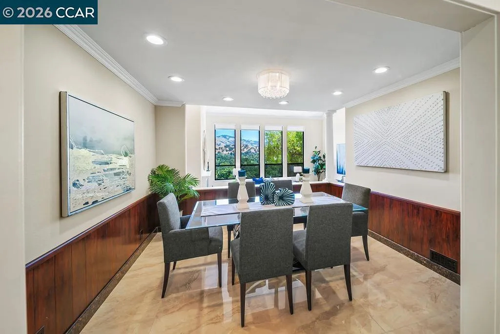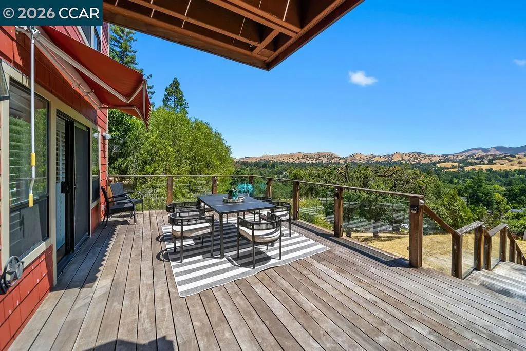 Welcome to 172 Rudgear Rd, where panoramic Mount Diablo views and refined living come together in perfect harmony. Perched on a prime Walnut Creek hillside, this beautifully appointed home offers breathtaking vistas from nearly every room. Inside, you'll find an excellent floor plan designed for comfort and versatility, featuring soaring ceilings, tasteful décor, and two spacious family rooms, ideal for relaxing or entertaining. The freshly updated kitchen shines with new quartz countertops, while the updated baths offer modern elegance throughout. The luxurious primary suite serves as a private retreat, complete with serene views and spa-like finishes. Multiple expansive decks provide the perfect setting for indoor-outdoor living, whether you're sipping coffee at sunrise or hosting gatherings under the stars. With a flat driveway, ample parking, and plenty of level outdoor space, there’s room to create the play yard, garden, or outdoor haven of your dreams. Stylish, spacious, and set against one of Walnut Creek’s most iconic backdrops, this is a home you won’t want to miss.