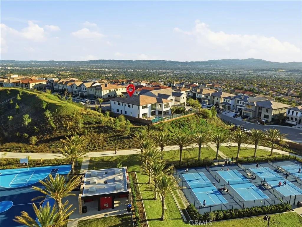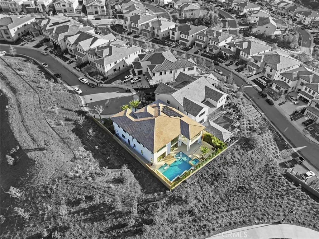 This exceptional estate offers over 5,400 square feet of thoughtfully designed living space, featuring 5 bedrooms and 6 bathrooms with a focus on scale, quality, and everyday livability. Clean architectural lines, soaring 20-foot ceilings, and an open layout create a sense of space and light throughout, while a striking floating staircase and Restoration Hardware chandeliers add a refined, elevated feel. Hardwood flooring spans the main level, tying the living spaces together with warmth and continuity. The kitchen is designed to impress, featuring Monte Blanc quartz countertops, custom cabinetry with full-height doors, and a premium appliance suite including Wolf, JennAir, and Sub-Zero. It opens seamlessly to the main living areas, where a built-in surround sound system enhances both entertaining and everyday comfort. Upstairs, the primary suite offers a private retreat with a spacious layout, spa-like bathroom, and generous walk-in closets. The outdoor space is equally well-appointed, highlighted by an oversized Pebble Tec pool with dual Baja shelves and an infinity spa, all surrounded by sleek porcelain slab hardscaping in both the front and back yards. Designed for both entertaining and relaxation, the setting offers a clean, modern aesthetic with low-maintenance appeal. With its strong architectural presence, high-end finishes, and well-executed design, this home delivers a balanced combination of luxury, comfort, and functionality.