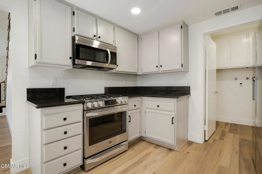 Welcome to this beautifully updated 3-bedroom, 3-bathroom, 1,373 sq ft end-unit townhouse - perfectly positioned for privacy and filled with natural light. Step inside to discover a move-in-ready gem boasting stylish wood-like luxury vinyl plank flooring, recessed lighting and an inviting open-concept layout. The bright and spacious living/dining areas are enhanced by vaulted ceilings and a cozy fireplace, creating the perfect setting for both relaxing and entertaining. Sliding doors lead to a quaint patio, ideal for morning coffee or evening unwinding. The upgraded kitchen is a true standout, complete with granite countertops, modern white cabinetry and sleek stainless-steel appliances blending both function and contemporary style. The main level offers exceptional versatility with a ground-floor bedroom and 3/4 bath, great for guests, a home office or multigenerational living as well as a convenient indoor laundry room and direct access to the attached 2-car garage. Upstairs, retreat to the generous primary suite featuring ample closet space, along with a secondary bedroom that enjoys its own full bathroom--offering comfort and privacy for all. Community amenities include a sparkling pool, spa and lush grassy areas for outdoor enjoyment. Ideally located near shopping, dining, scenic hiking/biking trails, easy freeway access and within the highly sought-after award-winning Oak Park school district. Welcome home!