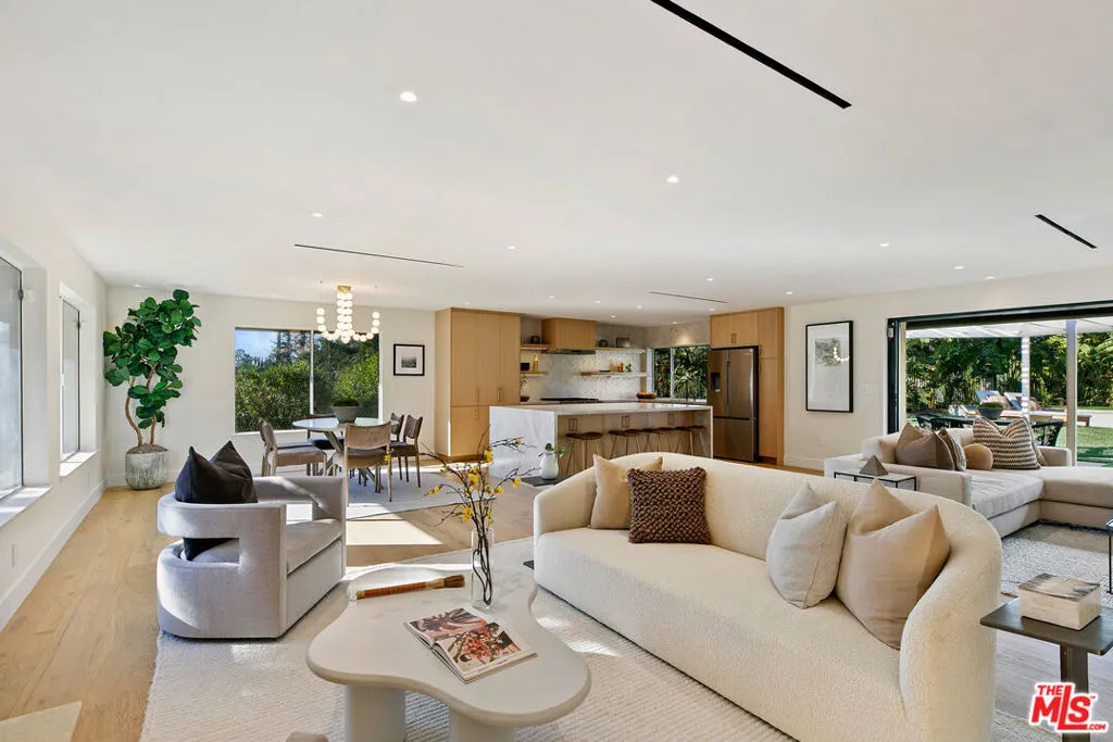 Nestled in the Greater Mulwood Area, one of Calabasas' most sought-after neighborhoods, just moments from Calabasas High School and A.C. Stelle Middle School. This exceptional residence offers a Rare blend of Luxury, Design, and Lifestyle. Thoughtfully designed and reimagined with no expense spared, the home showcases a true indoor-outdoor living experience, highlighted by expansive walls of glass that seamlessly connect the interior to a lush tropical Oasis Backyard retreat featuring a brand-new pool. Designed for both everyday living and elevated entertaining, the open-concept layout is complemented by high-end finishes rarely found featuring Tulum Vibes bathrooms, Taj-Mahal Countertops, Real European white oak flooring, and sophisticated gallery-style lighting. Every detail has been carefully curated to deliver a modern yet warm aesthetic, making this home a true entertainer's dream in one of Calabasas' most desirable locations. Set on a Beautiful street with easy access to Calabasas Commons, freeways, and fine dining, this home will surely wow the most discerning of buyers.
