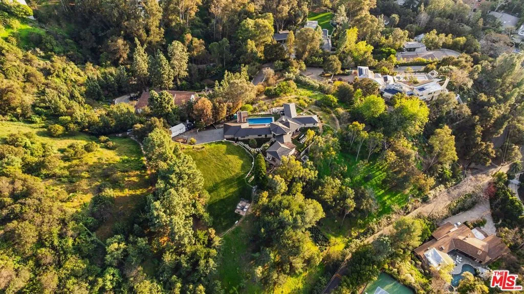 BEST-PRICED DEAL IN MANDEVILLE CANYON ON AN OVER 3-ACRE LOT. Hidden at the end of a private road in prime lower Mandeville, The Rivers Estate is a rare 3.5-acre sanctuary that defies comparison. Located just minutes from the Brentwood Country Mart, but a world away, this one-of-a-kind property offers a lifestyle of absolute privacy and panoramic scale. This sophisticated single-story residence features 5 bedrooms and 6 bathrooms, defined by soaring vaulted ceilings and windows that frame the landscape from every vantage. Designed for the quintessential California lifestyle, the light-filled interiors transition effortlessly to curated gardens and expansive entertaining spaces. The kitchen and family room serve as the heart of the home, opening to a resort-style backyard. Here, a sparkling pool and outdoor kitchen are set against a backdrop of rolling canyons and mountains, stretching all the way to Catalina Island and the Pacific horizon. The romantic primary suite is a masterclass in serenity, capturing mountain and ocean vistas. This private wing offers two boutique-style dressing areas, a morning coffee bar, and a spa-inspired bath that spills out into a tranquil Zen garden. The estate's vast acreage is a playground for the senses, featuring an expansive lawn, perfect for grand-scale events or family play, a lush orchard with dozens of mature fruit trees, a gym, two-car garage, and generous parking for your guests. The Rivers Estate is not merely a residence; it is a serene, unparalleled lifestyle for those who demand both proximity and peace.