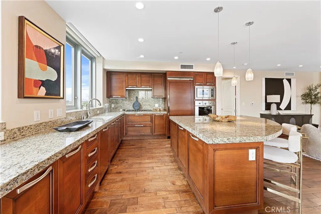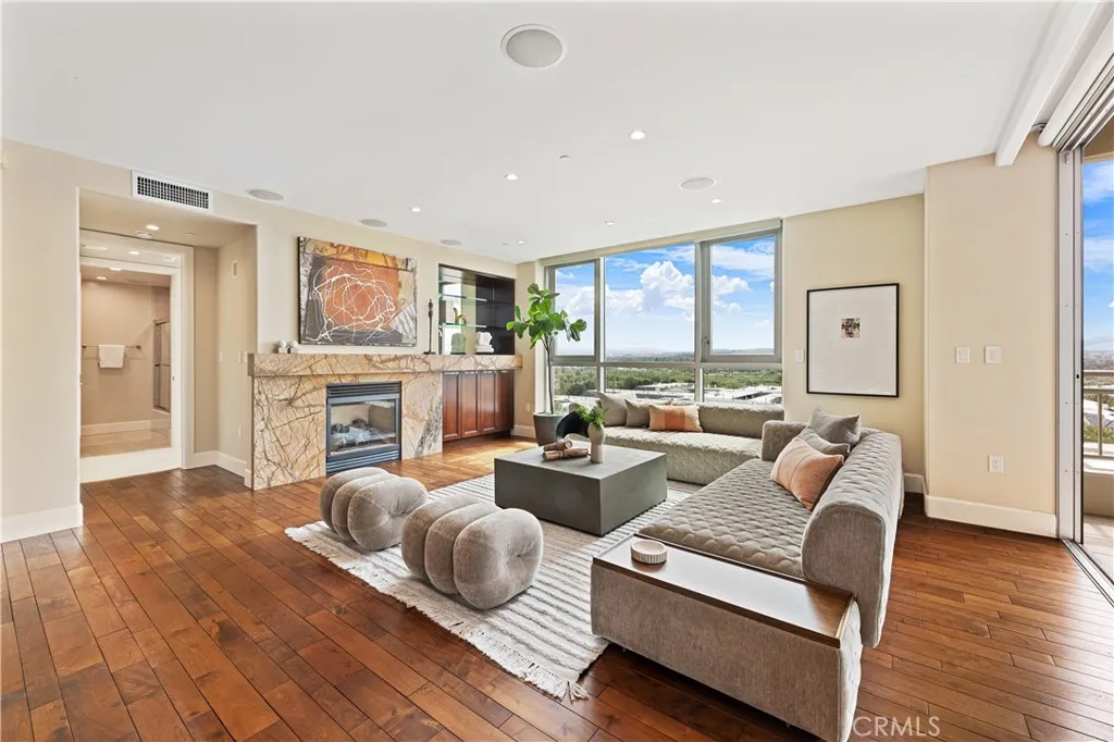 Perched on the 10th floor of the prestigious 3000 Plaza building, this sophisticated two-bedroom, two-and-a-half-bath corner residence offers a rare high-altitude lifestyle in Irvine’s most desirable high-rise community. The expansive, open-concept floor plan is defined by rich hardwood floors and an airy layout flooded with natural light through expansive windows and a sliding glass door leading to the private terrace. A chef-inspired kitchen featuring high-end appliances flows seamlessly into a massive great room, perfect for entertaining or quiet relaxation against a panoramic backdrop of unobstructed, forever views. This unique corner position ensures additional privacy and enhanced vistas compared to standard units. Step out onto the balcony to experience an exclusive vantage point situated near the building's celebrated rooftop pool. Beyond the home's interior, which includes a rare private storage unit, residents enjoy a true luxury "lock-and-go" experience with monthly HOA fees that conveniently include water, trash, cable TV, and high-speed internet. World-class amenities provide an elite sanctuary, including 24-hour concierge and security, a state-of-the-art fitness center, a third-floor spa, and a resort-style rooftop pool with fire pits and a club room, all located in close proximity to top-tier dining and local cafes.