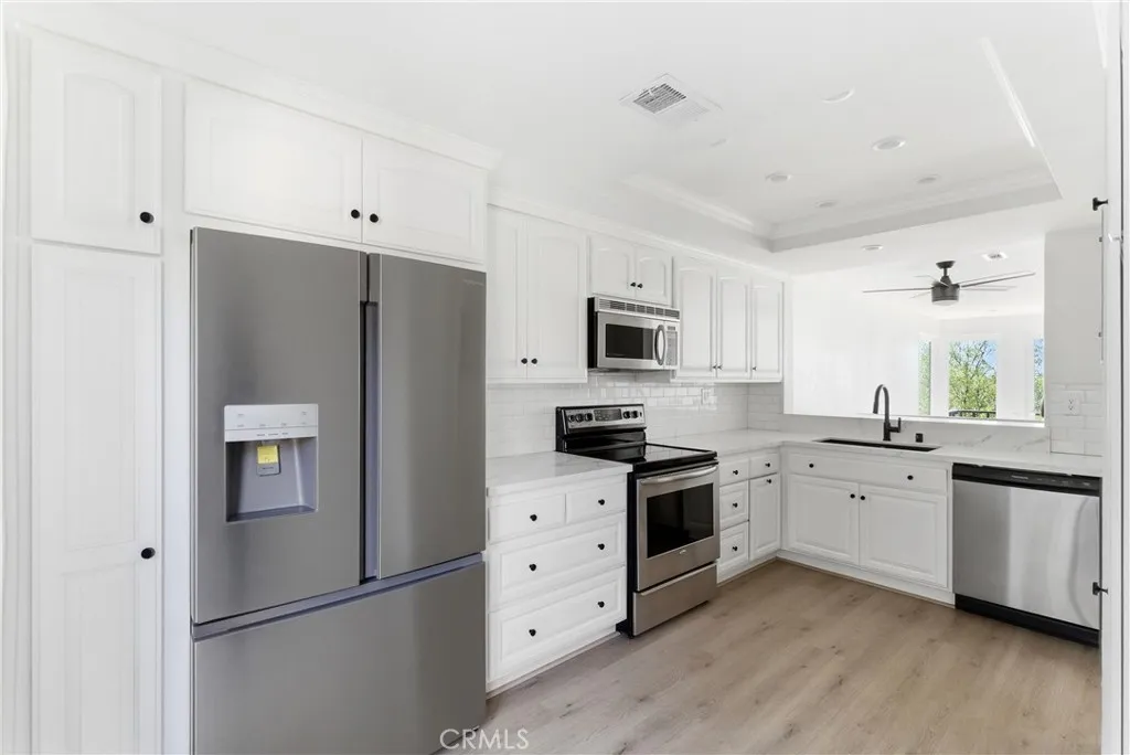 Beautifully remodeled unit with views of Catalina Island, the Santa Ana River, and "The Bluffs" Fairview Park. A great unit with new appliances in the kitchen that flows into a cozy family room with a fireplace and amazing views. Upstairs there are two bedrooms and two bathrooms, and in unit laundry in the hall. The primary bedroom has a great view of the ocean and Fairview Park. This quiet community called Mesa Bluff is perfect for young professionals or empty nesters looking to downsize in a great location near great restaurants, shopping, and the beach. This unit comes with a one car detached garage and an assigned parking place.