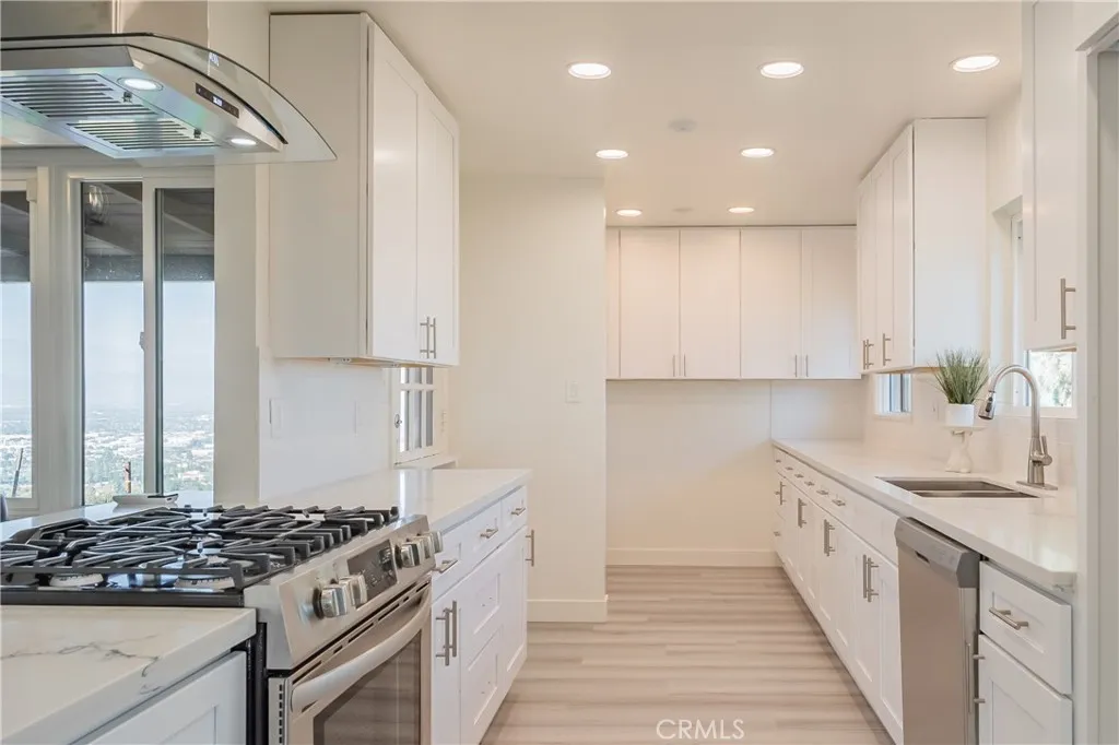 If you are looking for a very special, extremely private view property sitting on its own hill with 250 degree views of the East San Gabriel Valley (from Duarte to Diamond Bar), unobstructed city and mountain views, this is it! On the opposite side of the house there is a beautiful unobstructed canyon view. This home has an abundance of light that looks out to the multiple views. The lot size is over two acres. There is a lot of buildable land for many multiple structures. The owner has worked on developing a new home and has included the survey of the 96,000+ square foot lot and the topography report. These items are included in the sale of the property which will allow you to hire your architect and start designing your "King of the Hill" home, if desired. The single level ranch style home has been fully remodeled with brand new exterior stucco and paint. The remodeled home features a brand new kitchen that has been gutted. Kitchen features loads of new shaker cabinets, long quartz countertops, brand new built-in range and oven with stainless steel hood, new stainless steel dishwasher, new deep stainless steel double sink, and recessed lighting. New interior paint and wood vinyl waterproof laminate flooring throughout entire home. Primary bath has been fully remodeled and features step-in shower and oversized mirrored wardrobe closets. All new plumbing fixtures including showerhead and faucet. New vanity with shaker cabinets and quartz countertop. Hallway bath features new vanity, quartz countertops, new sinks, glazed tub, and new lighting fixtures. The large living room features a cozy fireplace, built-in entertainment unit, and new light fixtures. Fabulous sit down views of mountains, canyons, city lights, wildlife and more. There is an office centrally located with new track lighting. Brand new central air and heating system. Automatic sprinklers with landscaped front, side and back yards. Huge 2 car garage with new interior paint, new indoor/outdoor carpet, automatic garage door, double door entry into garage, and two huge windows that overlook the view. This could be a separate living space. This property is very secluded, quiet, peaceful and tranquil. There is a circular driveway that has just been repaved. Quick access to freeway within 8 minutes. Only 20 miles from downtown LA. Great schools. Great neighborhood.