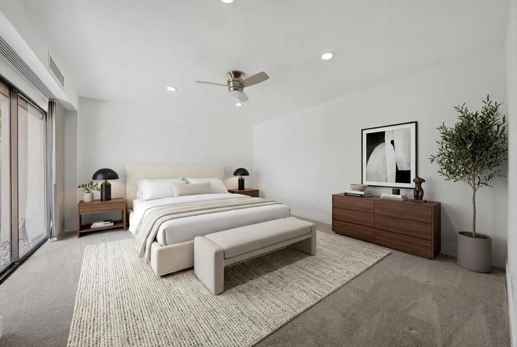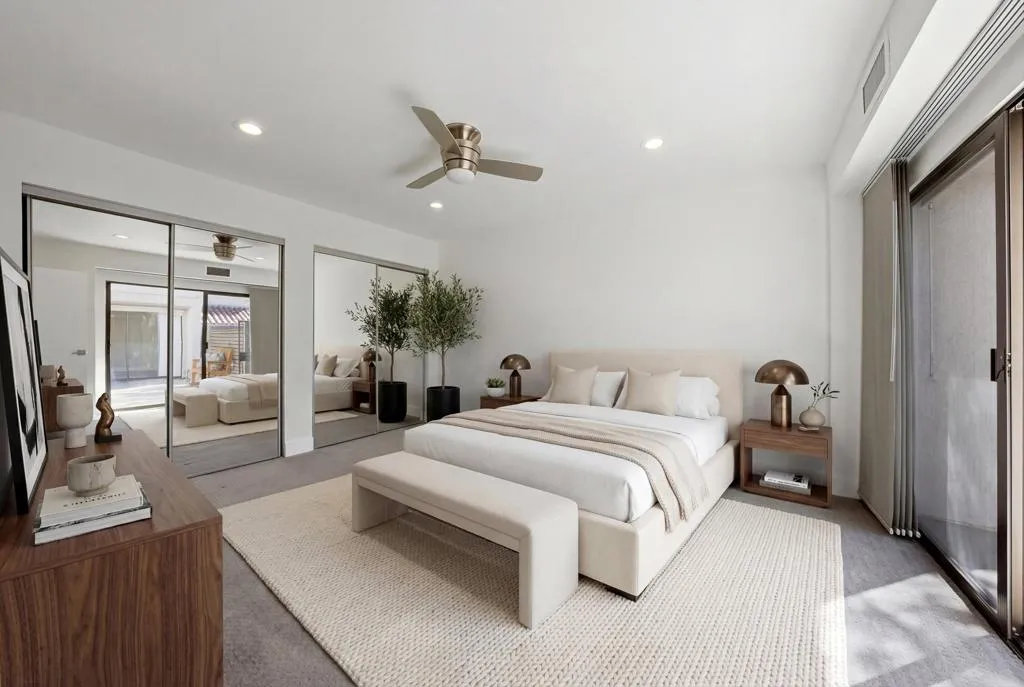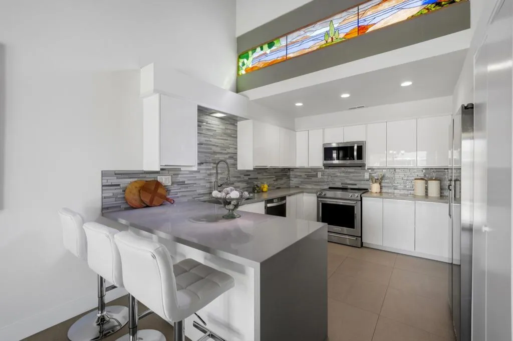 Stunning 3 bedroom 3 bath property that has been completely reimagined with modern clean lines and NO stepdown. Gated large private courtyard, with spacious rear entertaining space overlooking a beautiful greenbelt. Vaulted wood beamed ceilings, new tile flooring, quartz countertops and stainless steel appliances and super close to the Clubhouse.Best of all, the land lease has been paid at the earliest cycle and will expire in 2121!This is one you don't want to miss!