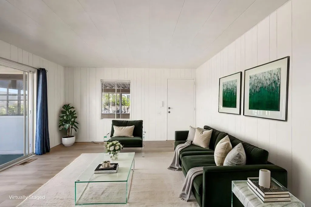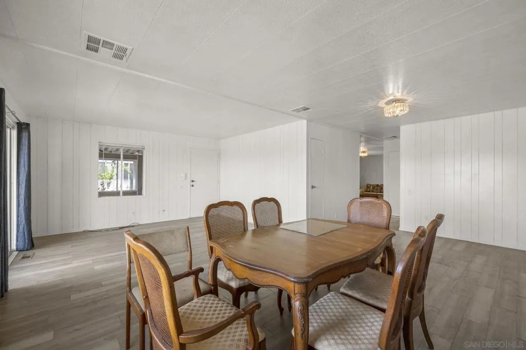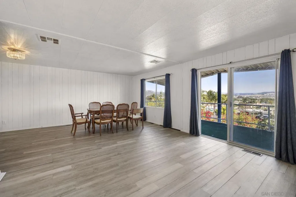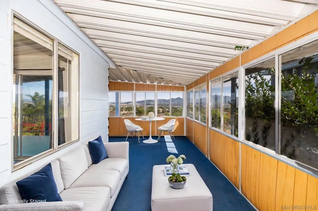 Views - Unmatched Panoramic views can be enjoyed from the private open-air back porch, enclosed wraparound porch, and from within the living and dining areas. The spacious interior features separate living and family rooms, offering flexibility for both relaxing and entertaining, while each bedroom includes its own attached bathroom for added comfort and privacy. Additional highlights include dual carports on either side of the home for convenient parking, a wheelchair ramp for accessible entry, fresh interior and exterior paint, and a large 22' x 10' workshop ideal for storage or hobbies. Located in Rancho Vallecitos, a beautifully maintained 5-star, resort-style 55+ community (second resident may be 45+), residents enjoy a wide range of amenities including a clubhouse/recreation center, pool and spa, library, fitness center, billiards room, card and game rooms, craft space, putting green, dog park, and optional RV parking. Monthly space rent is $726 and the community is under city rent control.
