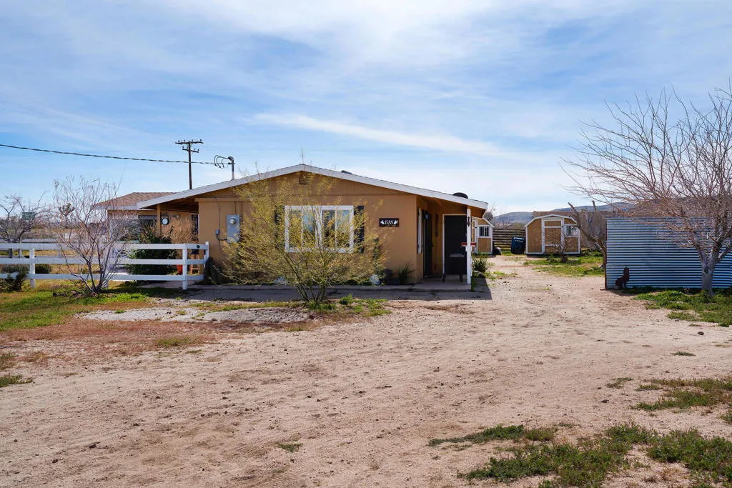 Residential/Commercial/Industrial/Agricultural opportunity, Zoned HV/SD-COM, with Hwy frontage! This may present opportunities for a hotel, restaurant, lounge, retail, art gallery, agricultural business or more. Buyer must verify all uses with the county planners. Beautiful and spacious 1,200+ sqft mid-century home with 2 bed and 2 bath on 4.72 acres in trendy Flamingo Heights. Mature Joshua Trees. Two storage sheds and a shipping container. Almost two acres fenced. Open the gate and enter the over 100ft driveway with accents of 3-rail ranch fencing leading to the home. A shaded patio alcove leads to the front door. Spacious living room with Spanish tile flooring, wood trim, recessed lighting, electric hearth and mantle fireplace. Kitchen with electric cooktop peninsula, long counter tops, dual basin sink, refrigerator, ample cabinets and cupboards. Dining area. Mini split ac/heat. Main bath with bathtub, shower and long counter top vanity. Additional bathroom with shower and vanity. Large master bedroom with glass slider to the patio. Second bedroom with two large closets and glass sliders to the study/computer room. Carport with slab is perfect for a breezeway style patio. Plenty of space for bbq dinners alfresco with friends and or a shaded desert lounge. Detached shade pergola. Corrugated steel privacy fencing. Rear patio garden like setting. Ideal for soaking in serene desert evenings and the gentle breeze. Inspiring views of Flat Top Mesa and Ruby Mtn. Close to the endless wildness trails of Hondo Canyon. Enjoy a fire pit with friends under the stars. Close proximity to Giant Rock Bar and Pizza, La Copine restaurant, Heros restaurant, and a few convenience stores. The large acreage presents opportunities more residential structures. Build a second house, guest houses, barns, and a hobby farm. More celebrities, artists, and musicians are now calling Flamingo Heights home than ever before. 41 miles to Palm Springs. 55 miles to Big Bear Lake. 10 miles to Yucca Valley. 18 miles to Joshua Tree National Monument where about 3 million tourists visit annually. Rare opportunity for creating the dream desert ranch and business you've always wanted. Don't Wait! - Call Now!