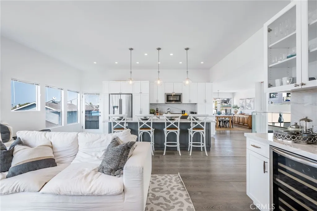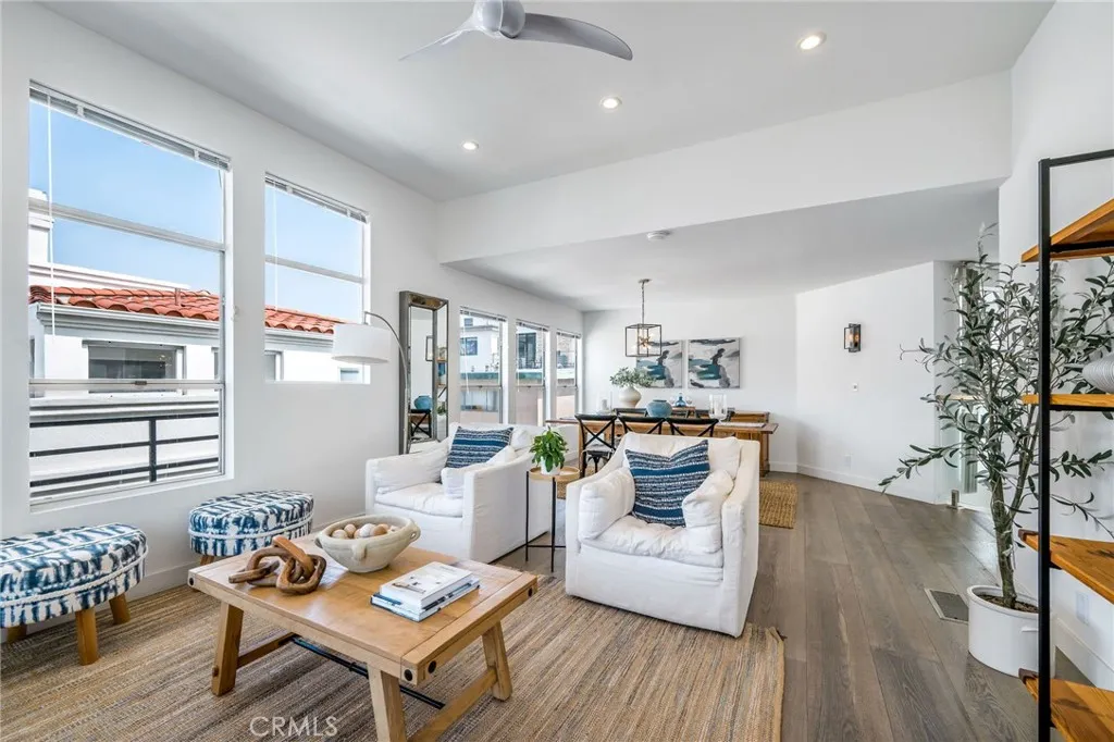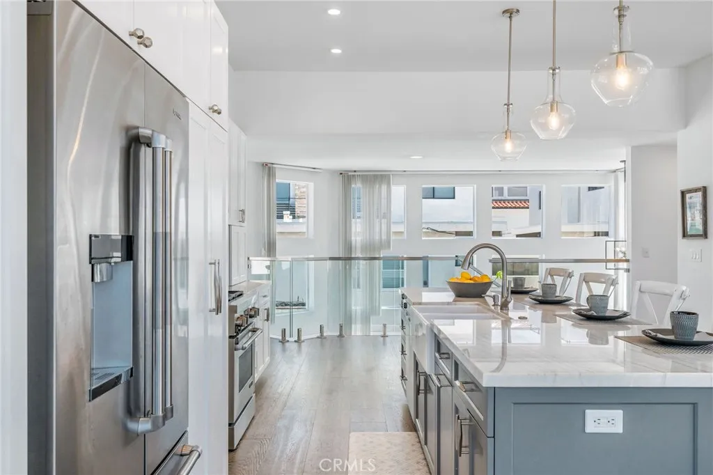 Experience the best of South Hermosa Beach living in this beautifully positioned detached townhome that lives like a single-family home, offering ocean views, abundant natural light, and the relaxed charm of one of the area’s most beloved neighborhoods. Located west of PCH just a few blocks from the beach, the Greenbelt, and South Park, this home captures that rare small-town coastal feel while keeping you connected to everything the South Bay has to offer, including nearby neighborhood cafés, shops, and the vibrant Hermosa Beach lifestyle. Spanning approximately 2,160 square feet, the home features a thoughtfully designed layout that maximizes both views and livability. The upper-level common areas are ideally positioned to capture ocean vistas from every main living space, with expansive windows that flood the home with sunlight and create a bright, airy atmosphere throughout. The updated kitchen is both stylish and functional, appointed with JennAir appliances, Bosch dishwasher, quartzite countertops, and an open layout ideal for cooking, gathering, and entertaining. Wood floors add warmth and sophistication, while the open-concept living areas invite you to relax, host, and enjoy the coastal setting. All three bedrooms are located on the main level, each with balcony access, creating a peaceful retreat separate from the entertaining spaces above. At the end of the day, unwind to the sound of waves crashing from your bed and enjoy the everyday luxury of beachside living. The lower level adds exceptional functionality with a mudd room, laundry room, tool storage, and a rare four-car garage—an incredible amenity at the Beach. There is a shared guest parking space in the driveway. Owner upgrades include New kitchen and appliances, 10' kitchen island, custom lighting, glass railings, coffee bar, Quartz gas fireplace, EV Charger, new water heater and Hardwood flooring throughout. Located within the Hermosa Beach School District. Start living the beach life today.