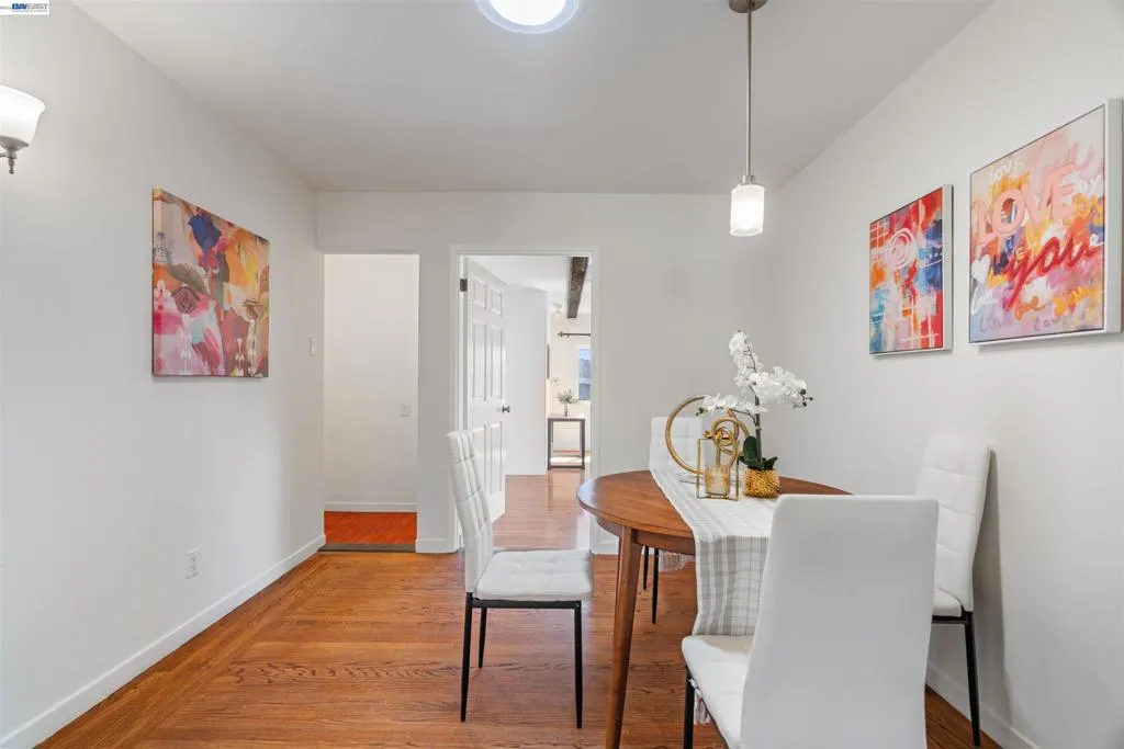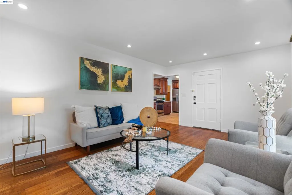 Sunny residence with classic curb appeal, set in a quiet, tree-lined neighborhood. This move-in-ready 3-bedroom, 2-bath home features an open, flowing layout filled with natural light. Step inside to a bright living room with a white-trimmed fireplace, hardwood floors, and large windows flooding the space with natural light. The kitchen features rich wooden cabinetry, stainless steel appliances, and generous counter space for cooking and entertaining. The primary bedroom is a serene retreat with vaulted ceilings, exposed wooden beams, and dual windows framing neighborhood greenery, plus a private ensuite bath. The additional bedrooms are well-sized and versatile, perfect for family, guests, or a home office. Outside, the front yard with mature shrubs and a concrete driveway adds convenience and curb appeal. Blending classic charm with modern functionality, this home is ideal for a comfortable, convenient lifestyle. Walking distance to parks and school. Don’t hesitate to visit!