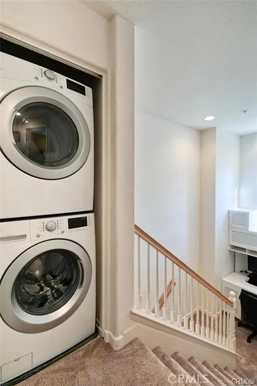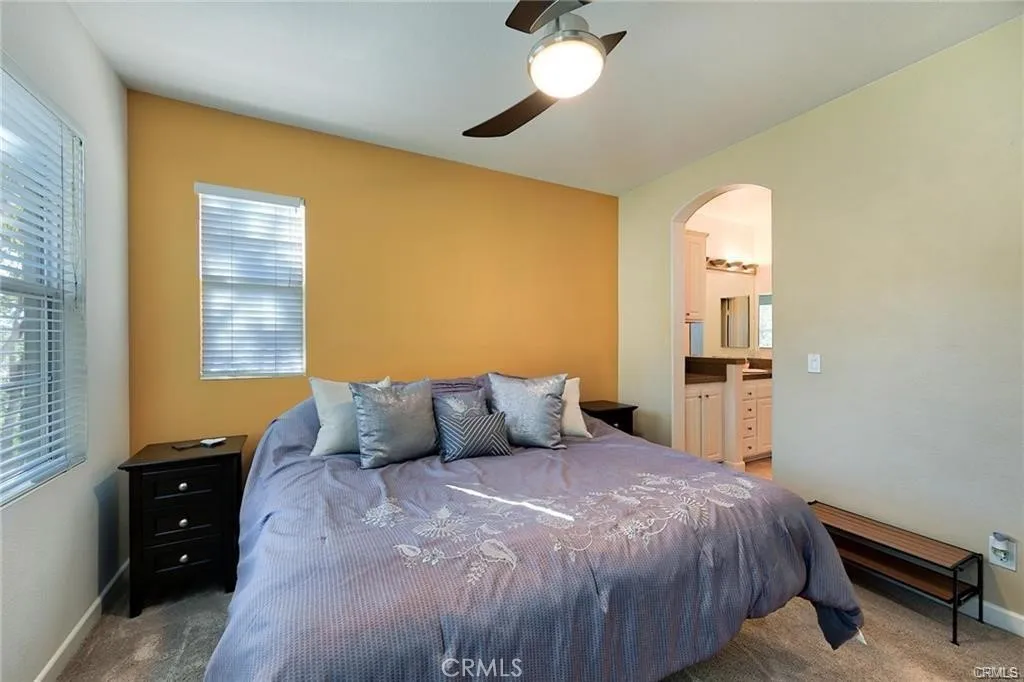 Enjoy elevated living in the highly desirable Valencia Village Walk community! Perfectly positioned in one of the most desirable locations in the complex. This beautifully upgraded 2-bedroom, 2.5-bath tri-level townhouse offers scenic views of the landscaped hillside with no front neighbors, creating a rare sense of privacy and tranquility. Step inside to a bright & inviting interior filled with natural light and tasteful upgrades, including travertine flooring, plush upgraded carpeting, mirrored wardrobes, and a spacious walk-in closet. The stylish gourmet kitchen features granite countertops, a full tile backsplash, stainless steel appliances, recessed lighting, elegant white cabinetry with decorative hardware, and a convenient breakfast bar—perfect for both everyday living and entertaining. The kitchen flows effortlessly into the dining and living areas, where large windows showcase lush greenery, and the welcoming living room features a raised hearth fireplace and sliding doors leading to your private patio. Ideal for relaxing evenings or weekend gatherings. A thoughtfully designed mid-level study nook with a built-in desk and cabinetry provides the perfect work-from-home space. Upstairs, both spacious bedrooms feature ceiling fans and private en-suite bathrooms with granite countertops, offering comfort and privacy for residents and guests alike. The upstairs laundry room adds everyday convenience. Additional highlights include direct access to a full-size two-car garage with extra storage space. Residents of Village Walk enjoy resort-style amenities, including a sparkling pool, relaxing spa, and direct access to scenic Paseo walking and biking trails. Ideally located just minutes from the I-5 freeway, award-winning schools, premier shopping, dining, and entertainment, this home offers the perfect blend of comfort, convenience, and lifestyle. Move-in ready and available soon—don’t miss the opportunity to live in one of Valencia’s most sought-after communities!