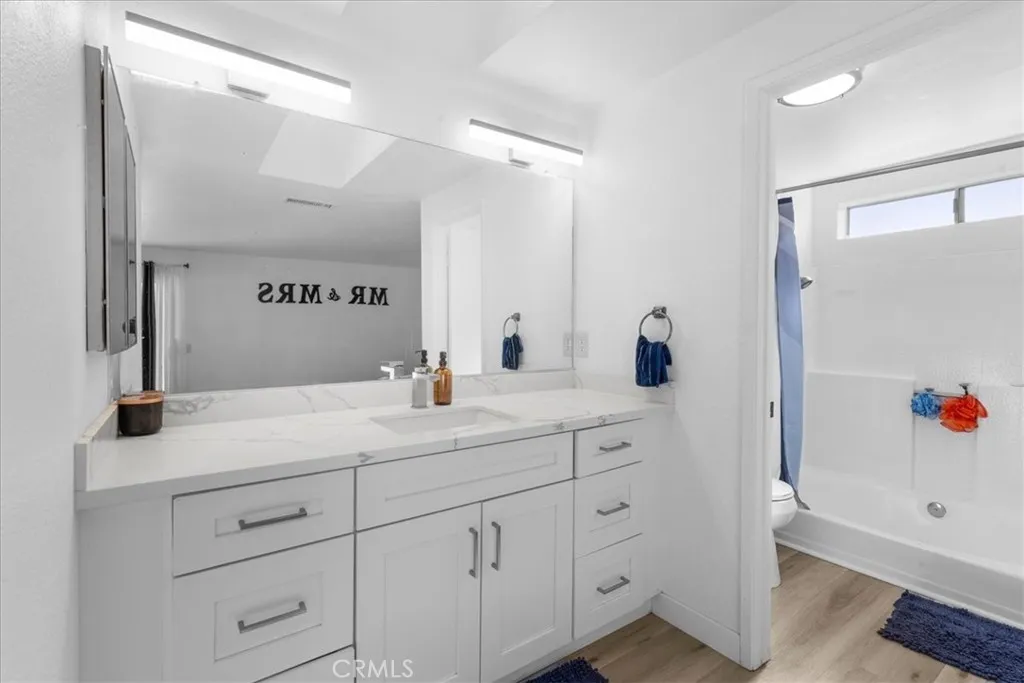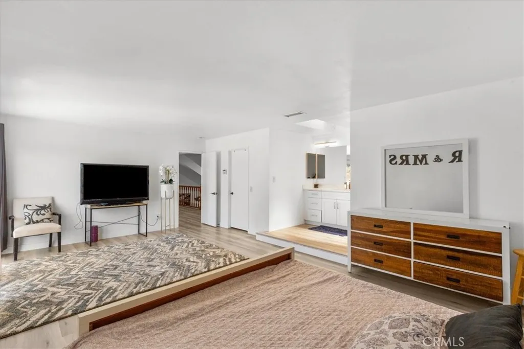 AMAZING VALUE – PAID SOLAR + NEARLY HALF AN ACRE + NO HOA. Beautifully upgraded 2,862 sq ft home on an expansive .48-acre lot with fully paid solar. This light-filled home offers 5 bedrooms and 3 bathrooms, a formal living room with fireplace, dining area, new flooring, and fresh interior paint throughout. The oversized, expanded kitchen is a standout—featuring abundant cabinetry, a striking copper hood, and a large walk-in pantry. The kitchen opens to the spacious family room with fireplace and slider access to the backyard. Main floor bedroom with private slider and bath—ideal for guests or multi-gen living. Upstairs includes the primary suite with private balcony, two additional bedrooms with Jack-and-Jill bath, bonus room, and flex space. Recent upgrades include new flooring, updated vanities, baseboards, paint, and dual HVAC systems. Bright and open layout with skylights throughout. Exterior features include RV parking with dedicated entrance and dump, decorative iron double gate, herringbone paver patio, burnished block walls with natural stone caps, and mature ficus trees for privacy. Endless potential on this oversized lot. No HOA. Low taxes.