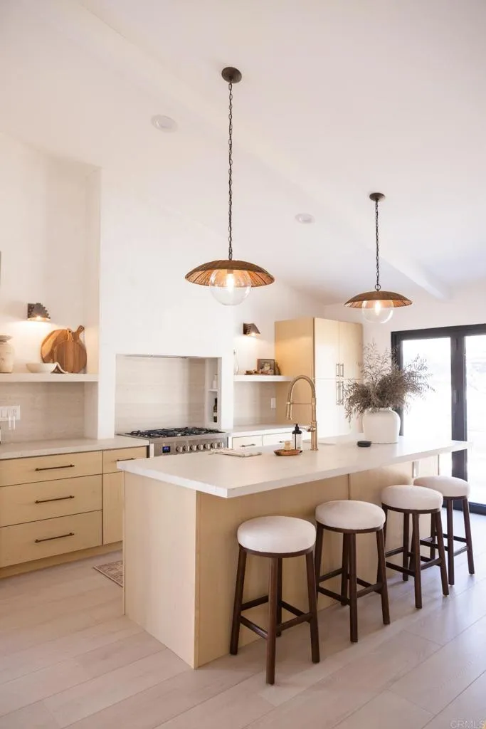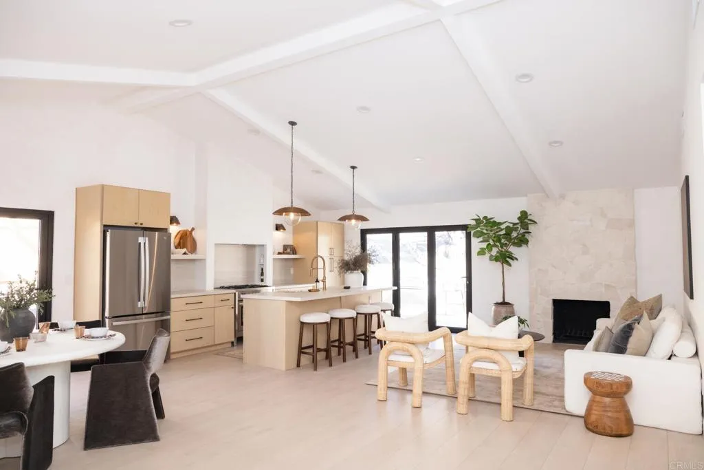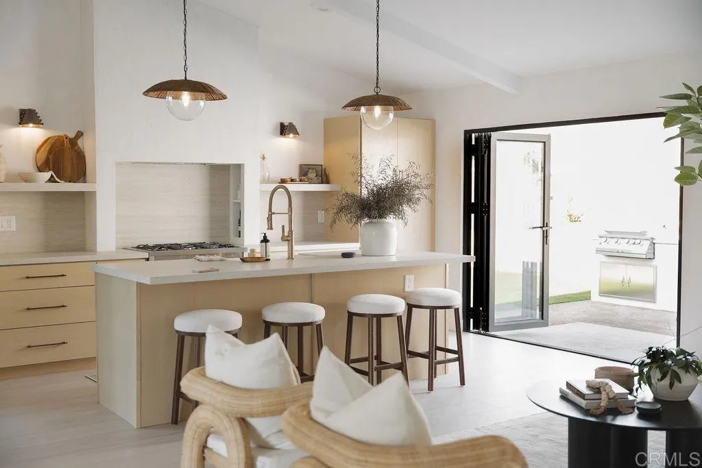 Welcome to this stunning coastal retreat in the heart of Fire Mountain—where natural beauty and elevated design come together. This premier and elevated corner lot sits a stunning single-level home blending coastal style with warm finishes and indoor-outdoor living — all just minutes from the coast. Vaulted ceilings, abundant natural light and multiple bifold doors create an inviting, open-flow throughout. From the moment you enter through the charming Dutch door, you’re welcomed into the impressive custom chef’s kitchen featuring a soaring vent hood, high-end appliances, custom cabinetry and an expansive island. The living space features a beautiful and cozy stone fireplace. Hike through the private backyard trail with peek a boo ocean views from the top just awaiting your morning coffee or sunset toast. Host unforgettable evenings on the patio with a custom outdoor kitchen, unwind in the turfed, low maintenance yard, or gather for al fresco dinners and bonfire nights under the stars. The primary suite is a true retreat that delivers a resort-like escape with a stone shower, checkered tile, generous closet and bifold doors opening to another private grassy yard enhancing the home’s signature indoor-outdoor flow. Perfectly positioned less than a mile from Trader Joe’s, Target, and everyday conveniences, plus just minutes from the Freeman Collective, top dining, and some of North County’s most beautiful beaches—this home offers the ultimate coastal lifestyle. This is more than a home—it’s your coastal dream brought to life.