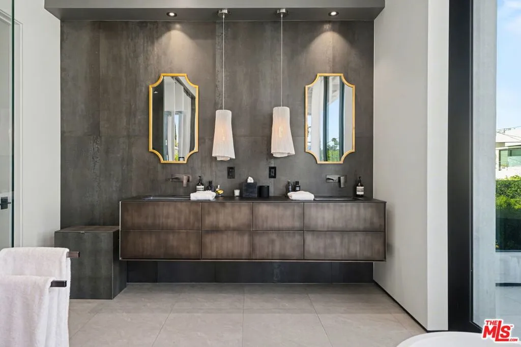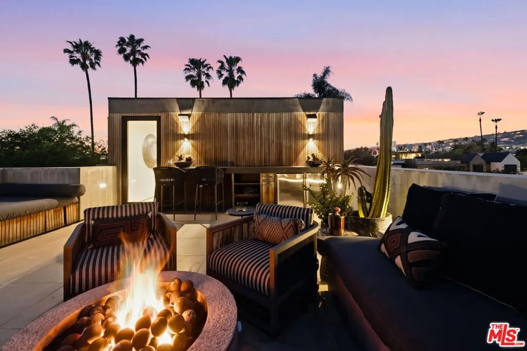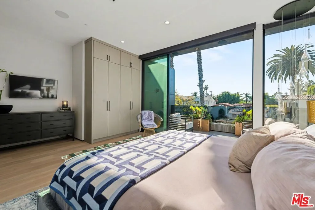 Newly built, gated architectural home with an elevator and approximately 2,000 sq ft of outdoor space, including a professionally designed rooftop deck with a fire pit and views of the Hollywood Hills. Conveniently located near Beverly Blvd, Melrose Ave, and Santa Monica Blvd. and situated between the Grove and the Beverly Center near West Hollywood. The home features an open floor plan with large Fleetwood sliding doors that connect the main living areas to multiple balconies and decks. The kitchen is equipped with top-of-the-line Miele appliances, including a Miele refrigerator and gas stove, along with a large center island that opens to the living and dining areas. The backyard includes a pool and hot tub with water features, cabana, a fireplace, and space for outdoor entertaining. The primary suite offers a spacious walk-in closet, dual shower, spa-style bath, and two private balconies including an outdoor fireplace. Additional features include a home theater, gym, recreation area with wet bar, smart home system, two-car garage with EV charger, and additional gated parking. Rent includes weekly pool service, weekly housekeeping, bi-weekly gardening, and all TVs. Property will be delivered unfurnished.