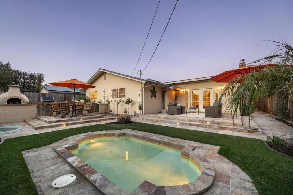A lovingly maintained home in one of Capitolas most desirable neighborhoods. Located in Cliffwood Heights, this single-level home offers ground-floor bedrooms, a functional floor plan, and a wonderful blend of comfort, character, and thoughtful upgrades. The front yard and driveway enjoy a pleasant ocean view, while the location offers easy access to Capitola Beach, New Brighton Beach, Capitola Village, local shops, cafés, restaurants, and Highway 1. Inside, features include original hardwood floors, tile entry, abundant natural light, skylights, separate living and family rooms, slate flooring with radiant heat in the family room, and two fireplaces, including one with a gas insert. The enlarged and remodeled kitchen features granite countertops, stainless steel appliances, portable island, and custom floor-to-ceiling cabinetry. Outdoor spaces include attractive slate patios and walkways, large deck, covered front porch with pergola, outdoor fireplace, wood-fired pizza oven, built-in gas BBQ with sink, water feature, raised garden beds, outdoor shower, and in-ground hot tub. Thoughtfully improved and exceptionally well cared for, this is a special Capitola property in an outstanding coastal location.