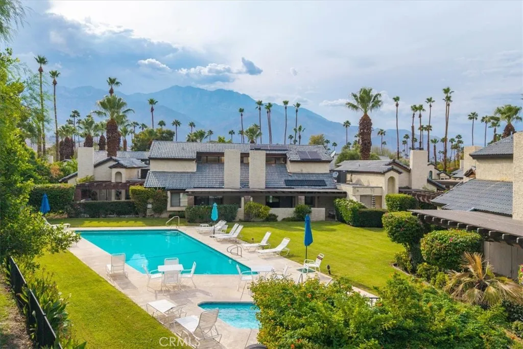 FULLY FURNISHED CONDO, PAID OF SOLAR PANELS WITH $0 BILLS FROM EDISON! with a backyard leading to green area, pool, and golf course. Escape to your private retreat at the Tahquitz Creek Golf Resort! 3 bedrooms 2 bathrooms (master suite is upstairs for privacy). Offering a resort-style experience with a serene outdoor space, pool/spa (if applicable), and open-concept living. Whether you’re in town for the World Cup or just looking to enjoy the sunshine, this home delivers the perfect balance of relaxation and accessibility. Backyard leads to pool and golf course area, its like having your own backyard oasis, tennis courts available. Message for pricing! POOL HEATED ALL YEAR ROUND!.