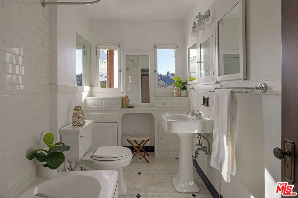 Tucked away from the street in prime Eagle Rock, this handsome Spanish is a study in period charm. The interior is stunning: golden light reflected in wood floors, a soaring beamed ceiling, and a stately fireplace anchoring the spacious living and dining areas. The adjacent library features elegant built-ins and one more fireplace. The kitchen and pantry maintain the period feel with white cabinetry, and there is a cozy breakfast nook. Three bedrooms include a primary wrapped with windows; the bathroom channels a vintage spirit, and the bonus room with a separate entrance is perfect for an office or guests.The outdoor spaces are magical: a terraced backyard with patios to lounge and enjoy sunset views, plus a front patio set beneath lush foliage. Amenities include central AC/Heat, laundry, and parking. Well-situated within the coveted Dahlia Heights Elementary boundary, you're moments from Capri Club, Little Beast, Cindy's, and the rest of NELA favorites.