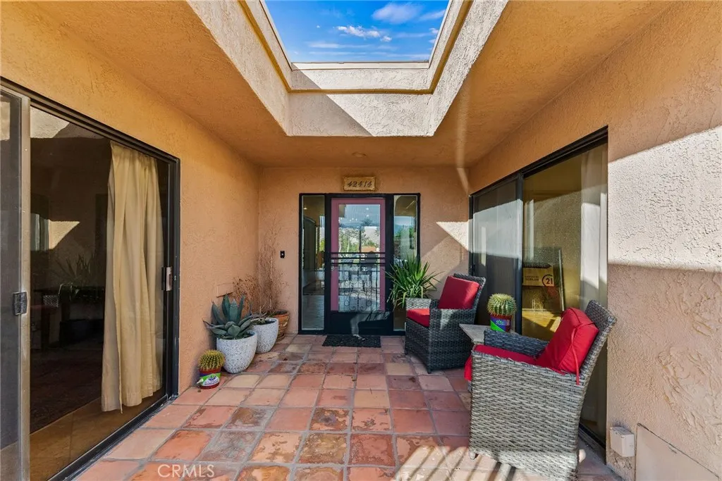 Welcome to your private oasis in the prestigious Bermuda Dunes Country Club. Spanning an impressive 2,215 square feet, this beautifully designed home offers 3 spacious bedrooms and 3 fully renovated bathrooms, perfect for modern living. Step inside to discover a meticulously maintained interior featuring sleek tile floors, recessed lighting, and the natural glow of a skylight. The remodeled chef’s kitchen is a true highlight, boasting a gas stove, range, range hood, open layout, and a charming breakfast nook, ideal for casual dining or entertaining. For more formal occasions, the separate dining room provides ample space to host guests. Additionally, an inviting home office provides flexibility and functionality for today’s lifestyle. Plus, being in the IID district means lower electric costs, adding to the appeal of this exceptional opportunity. The primary bathroom is a luxurious retreat with granite surfaces and dual sinks for added convenience. Throughout the home, dual-pane windows enhance energy efficiency while adding to the serene ambiance. Step outside to your private patio, perfect for relaxation or al fresco dining. This condo also offers a wealth of desirable amenities, including a sparkling community pool, a clubhouse, and secure features such as a gated entry, security patrol, and a full security system. Practicality meets convenience with a laundry room equipped for gas dryer hookups, ample storage options—including golf cart storage and bike room—and a garage with additional parking availability. Don’t miss this exceptional opportunity to own a stylish, low-maintenance home in a vibrant community. Schedule your private showing today!