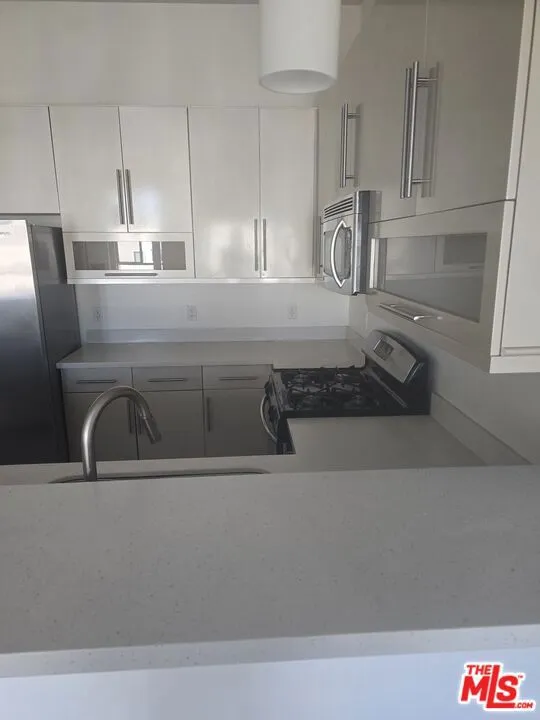 Experience the best of Los Angeles living from the top floor of a highly desirable condo in the heart of Koreatown. This corner unit offers an impressive combination of style, light and location--a rare opportunity in one of LA's most vibrant neighborhoods. This is a highly desirable northwest end unit on the top floor. This unit enjoys abundant natural light from multiple windows, along with sweeping views of the surrounding city. The living area features a fireplace nestled in the corner, and high ceilings, for a spacious and warm feel. Step outside onto your private patio and take in the view of Los Angeles all around you. The kitchen features sleek and modern European-style cabinetry ---designed for both beauty and function. The primary bedroom includes a walk-in closet, and the thoughtful floor plan makes excellent use of every square foot. This unit comes with two separate ( non-tandem) parking spaces and a private storage unit for added convenience. In this condo you will enjoy modern city living at its finest.