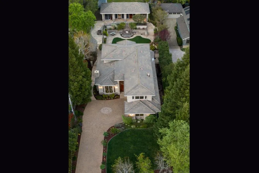 Elegant, comfortable and well-appointed Monte Sereno home with scenic views, beautiful backyard and just a few blocks to the heart of Downtown Los Gatos. Great floor plan with ground floor suite + library/office. All en suite bedrooms. Spacious, open-concept gourmet kitchen with large island, extensive cabinet space, walk-in pantry, butlers pantry and views of the backyard. Primary suite with hill views, natural light, huge walk-in closet, spa-like shower, large soaking tub and pass-through gas fireplace. 1-level guest house with high ceilings, kitchen, full bathroom, fireplace and Murphy bed with built-in cabinetry. Beautifully-landscaped property with drought-tolerant plants, mature roses, custom stonework and extensive patio space for family BBQs or entertaining on a grand scale. Room for a pool. Extensive driveway with pavers and 3-car garage. Low traffic cul-de-sac. Top-rated Los Gatos schools.