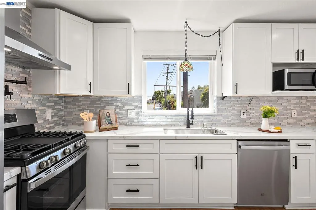 Set in Richmond’s sought-after North & East neighborhood, this beautifully updated home offers comfort, style, and versatility. The residence includes three bedrooms, two full and one half bathrooms, and an additional loft, all thoughtfully laid out across 1,423 square feet. Upon entry, the interior paint and updated lighting immediately create a warm, welcoming feel, while modern enhancements throughout lend a refined touch. The kitchen has been refreshed with sleek quartz countertops, contemporary cabinetry, and premium stainless steel appliances, making it both functional and visually appealing. The primary bathroom has been upgraded with a stylish vanity, new tile flooring, and a luxurious three-head shower paired with a soaking tub, perfect for unwinding at the end of the day. A spacious living room provides ample room for relaxing or hosting, while the large, private backyard offers endless potential for customization. The attached two car garage features convenient rear access doors leading directly to the yard. Ideally located near BART, the ferry, and major commuting routes, this home offers easy access to surrounding cities.
