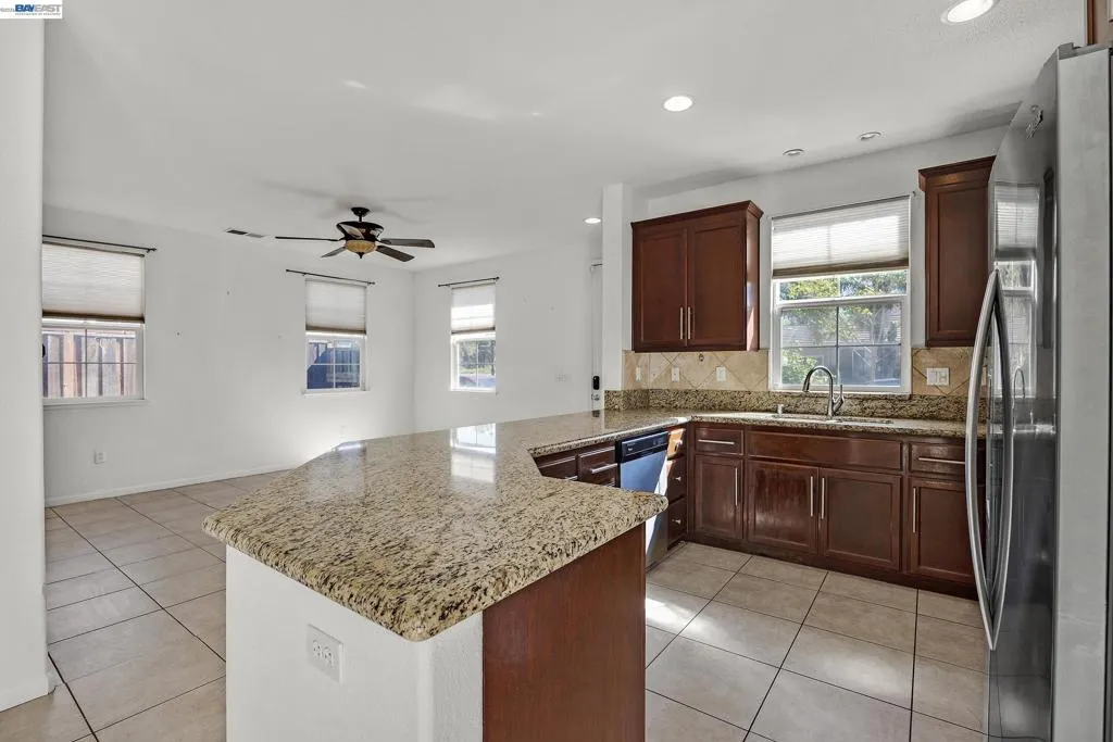 Step into this beautifully maintained 4 bedroom, 3 bath home featuring a bright, open concept layout designed for both everyday living and entertaining. The inviting living room showcases a cozy gas fireplace, while the upgraded kitchen is equipped with granite countertops, stainless steel appliances, and an oversized island that serves as the heart of the home. The main level also includes a full bedroom and bathroom ideal for guests or multi-generational living along with a thoughtfully designed storage area tucked beneath the staircase. Upstairs, you’ll find a convenient laundry room, a secondary bedroom and bathroom, and a bonus room that can be converted into a 4th bedroom. The spacious primary suite offers a true retreat, complete with a spa-inspired bathroom featuring dual vanities, a soaking tub, a separate glass enclosed shower, and an expansive walk-in closet. Located just 1.5 miles from BART and only blocks from Marina Walk Park, Easy access to local dining, shopping, and community events.