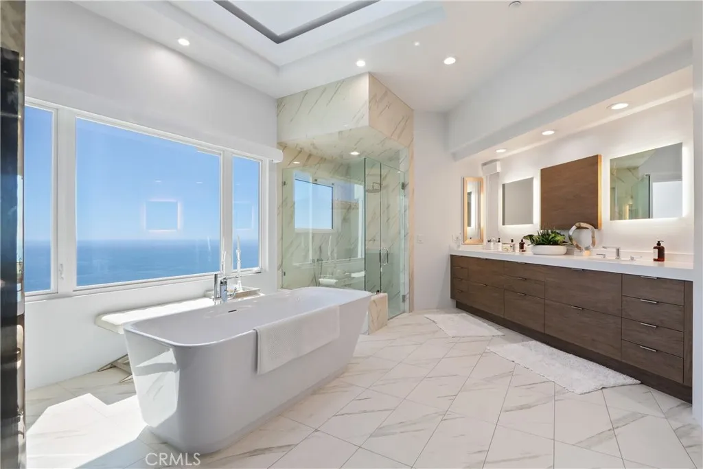 Monarch Point's exclusive guard gated community with amazing ocean views. Premier bluff top location on this custom contemporary estate located at end of cud de sac, custom gated driveway, beautiful glass entry door leads to foyer with incredible retractable skylight. Cathedral two-story ceiling living room with custom stone fireplace, floor to ceiling windows, custom sliding doors that open to amazing views. Custom finishes including granite and marble providing pure luxury to the sweeping panoramic ocean views. Features five suites and five bathrooms, spacious family room, custom piano room, gourmet kitchen with stone counters and custom cabinets, guest room located on main floor, primary suite with fireplace and lay down ocean views, along with custom sliding doors, primary bathroom is amazing with double custom spacious walk-in closets, private roof top deck located on third floor with jaw dropping views. Incredible backyard with inviting pool and spa, built-in BBQ and more, absolute luxurious yard with panoramic ocean and city views of the Dana Point coastline and beaches.