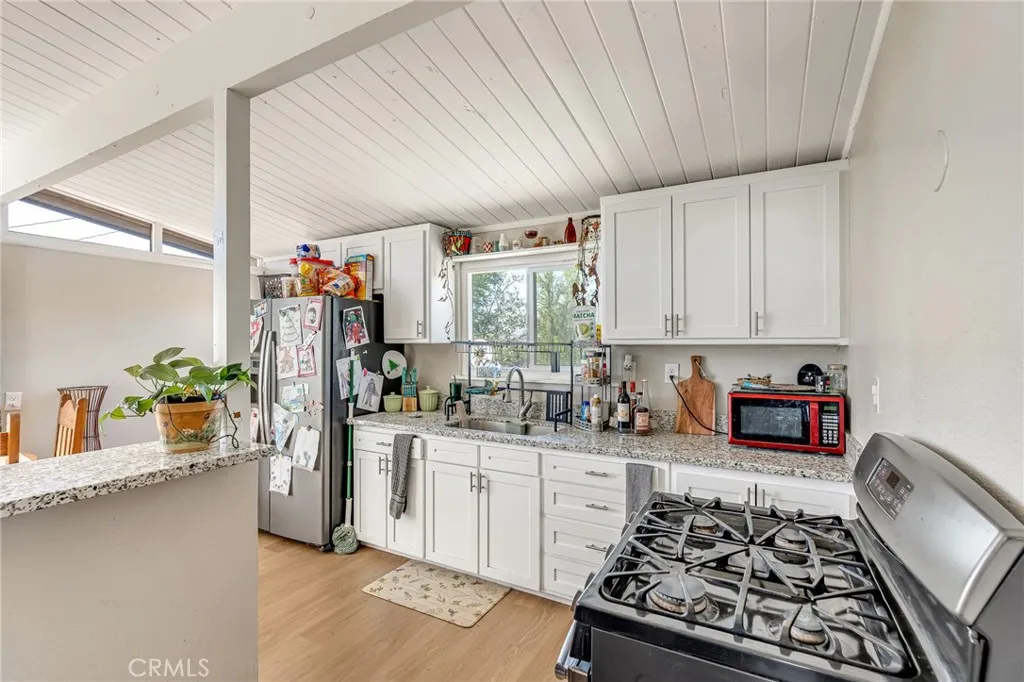 Move-in ready and beautifully updated! This 2-bedroom, 1-bath home features fresh interior and exterior paint, dual-pane windows, a new roof, HVAC, and septic system. The kitchen offers new countertops, sink, and range/oven, while the bathroom includes a new vanity, mirror, and toilet. Vinyl plank flooring runs throughout for a modern finish.Situated on a fully fenced 1/3-acre lot with two gated entries and plenty of parking. Includes a covered laundry area and a versatile lattice-covered space perfect for a carport or outdoor use. Private well provides great water quality and lower utility costs. Turnkey with major upgrades complete, ready for its new owner!