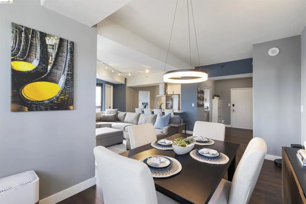 Welcome home to this one of a kind remodeled 2 bedroom unit in the exclusive Pacific Park Plaza building! This property has been meticulously remodeled from floor to ceiling with attention to detail. From the new LVP flooring throughout the home to the updated track lighting with dimmers. The kitchen boosts new white quartz countertops, white shaker cabinets, soft close drawers, glass backsplash with under lighting, and Stainless steal Frigidaire appliances. The half bathroom was updated to a full bathroom and both bathrooms have modern tile floors and walk in shower, LED mirrors, and Bidet. Both bedrooms have built in custom closets and spectacular views. The spacious open floor plan invites in natural light and the stunning views from the oversized windows and two balconies frame the hills in every room. Amenities conveniently located in the building including on site gym, tennis courts, pool/ hot tub, sauna, dedicated parking, EV car charging stations, laundry rooms on every floor and 24hr security desk. Steps to Christie park, Emeryville Public Market and Trader Joes. Plus, easy freeway access and multiple transit options including Amtrak, Emery-Go-Round Shuttle and Express Transbay bus lines right outside the front door!